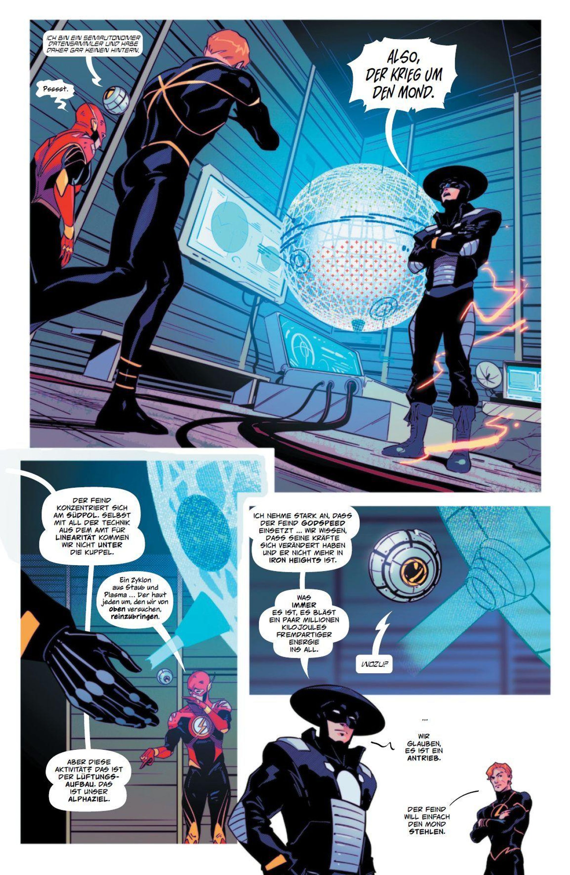 BÖSE VORAHNUNG Der Rachegott Eclipso hat in neuer Gestalt die Kontrolle über den Mond übernommen. Um seine Macht noch zu steigern, will er den Mond aus der Umlaufbahn bewegen, um die Erde in permanente Finsternis zu hüllen und die Menschen in die Verzweiflung zu treiben. Flash führt daher auf dem Mond einen unerbittlichen Kampf gegen Eclipso und seine Helfer, die Rogues, um diesen Plan zu durchkreuzen. Dafür splittet er sich in unendlich viele Kopien auf, um einen scheinbar aussichtslosen Kampf doch noch zu gewinnen.