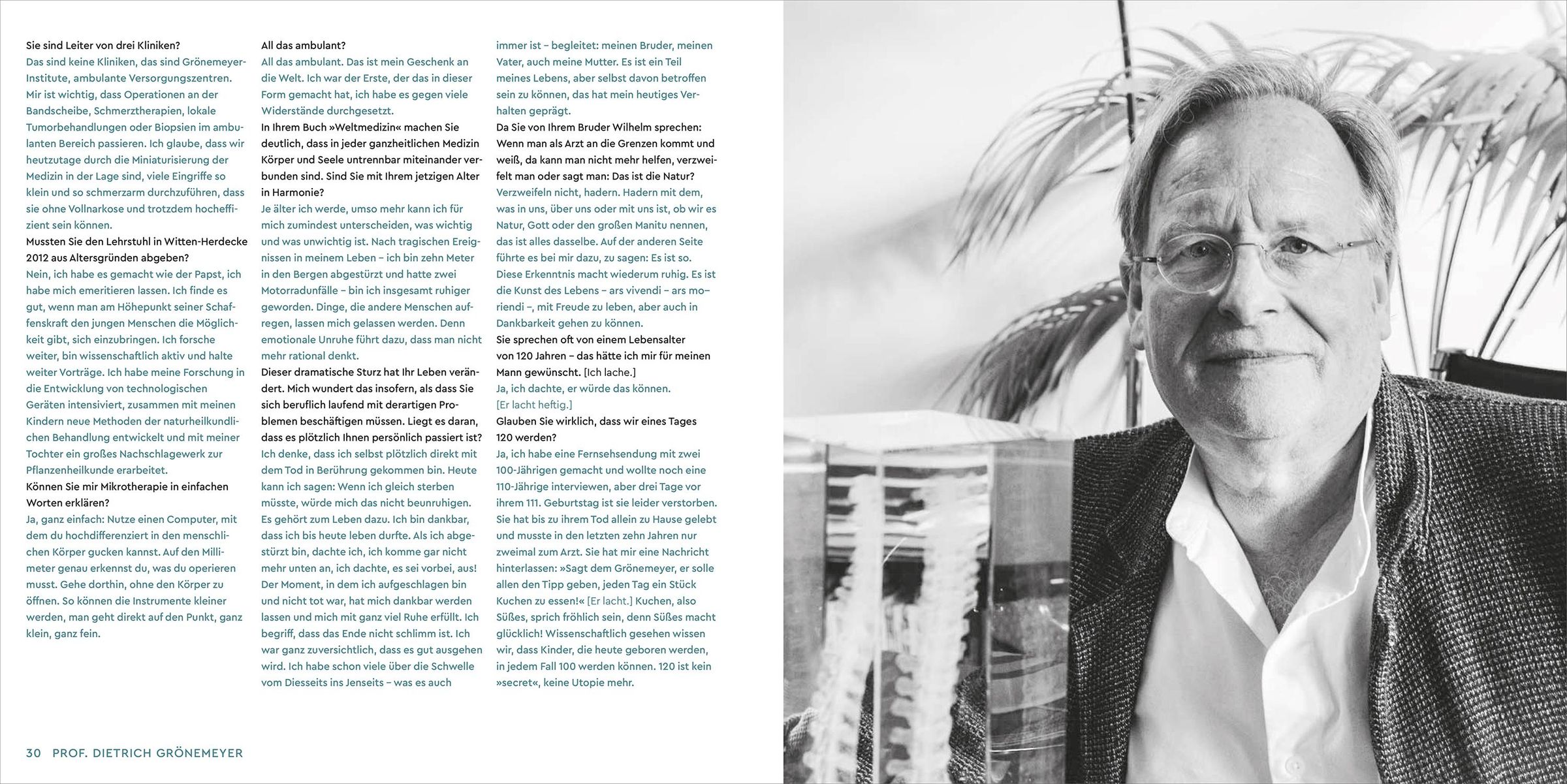 Für ihr Buch "ALTERSLOS - GRENZENLOS. Portraits und Gespräche über das Leben" hat sich Simone Rethel-Heesters mit Kamera und Mikrofon auf den Weg gemacht und mit Menschen gesprochen, die unabhängig von ihrem biologischen Alter ihr Leben weiterhin beruflich aktiv und sinnhaft gestalten: Handwerker, Künstler, Forscher oder Politiker, bekannte und unbekannte Persönlichkeiten. Diese Zeitzeugen berichten über Vergangenes und über die Zukunft: Nicole Heesters, Gerhard Kämpfe, Prof. Dr. Dietrich Grönemeyer, Waltraut Haas, Herman Klauke, Dieter Hallervorden, Prof. Dr. Wolfgang M. Heckl, Leon Spierer, Gregor Gysi, Walter Eichhorn, Jutta Speidel, Jürgen Wölffer, Prof. Dr. Lutz Jäncke, Werner Kimmig, Renata Wendt, Frank Lehmann, Lucy Engler, Otto Schenk, Peter Kraus, Impala Lechner, Peter Maffay, Rolf Kühn, Prof. Dr. Henning Wiesner, Prof. Dr. Rita Süssmuth und Mario Adorf. Entstanden ist eine beeindruckende Dokumentation mit durchaus kontroversen Ansichten nicht nur über das Thema Alter. Ein lesenswertes Buch mit beeindruckenden Fotos, das anregt, über die eigene Zeit im Alter neu nachzudenken.