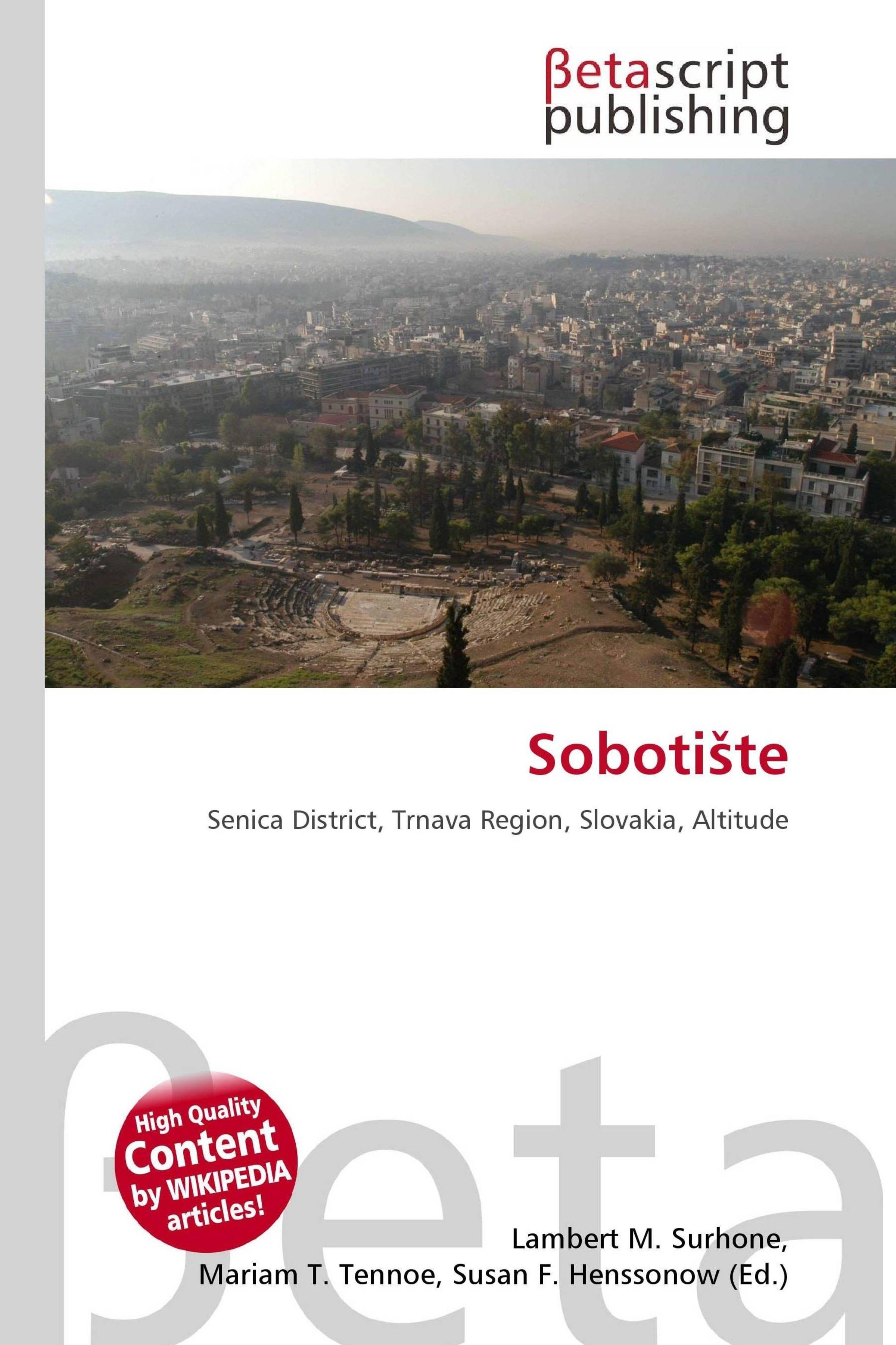 "Betascript Publishing" oben links, "Sobo­tište" in Rot in der Mitte. Stadtansicht mit Hügeln und Bäumen im Hintergrund., Buch