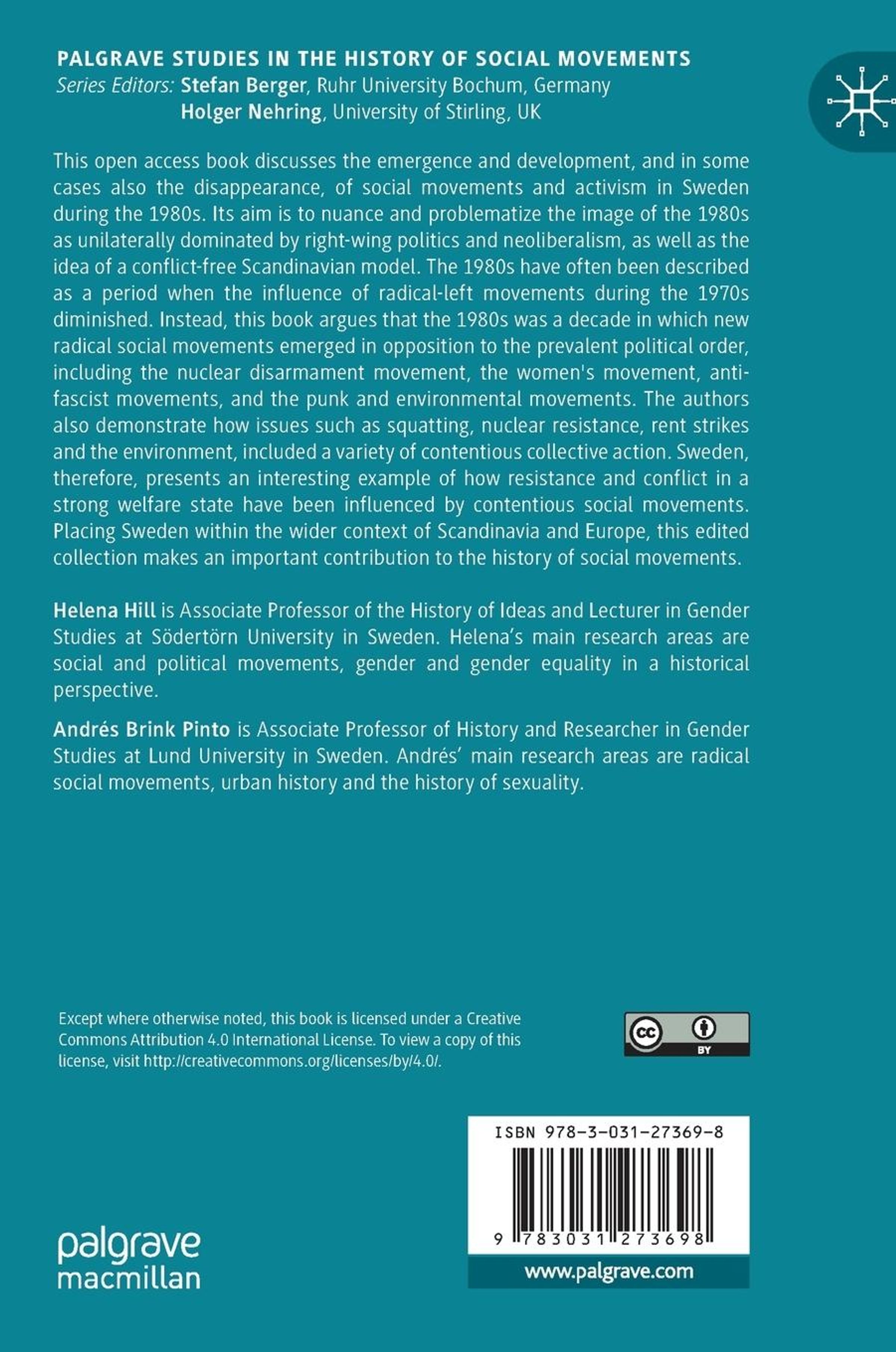 This open access book discusses the emergence and development, and in some cases also the disappearance, of social movements and activism in Sweden during the 1980s. Its aim is to nuance and problematize the image of the 1980s as unilaterally dominated by right-wing politics and neoliberalism, as well as the idea of a conflict-free Scandinavian model. The 1980s have often been described as a period when the influence of radical-left movements during the 1970s diminished. Instead, this book argues that the 1980s was a decade in which new radical social movements emerged in opposition to the prevalent political order, including the nuclear disarmament movement, the women's movement, anti-fascist movements, and the punk and environmental movements. The authors also demonstrate how issues such as squatting, nuclear resistance, rent strikes and the environment, included a variety of contentious collective action. Sweden, therefore, presents an interesting example of how resistance and conflict in a strong welfare state have been influenced by contentious social movements. Placing Sweden within the wider context of Scandinavia and Europe, this edited collection makes an important contribution to the history of social movements.