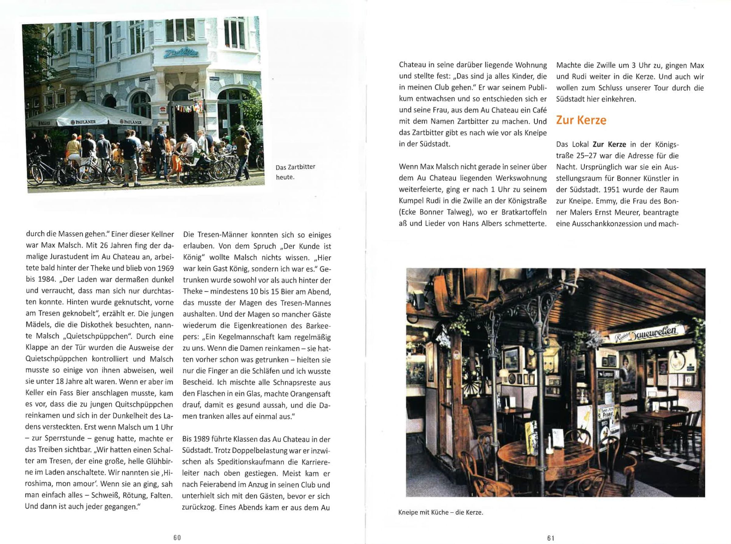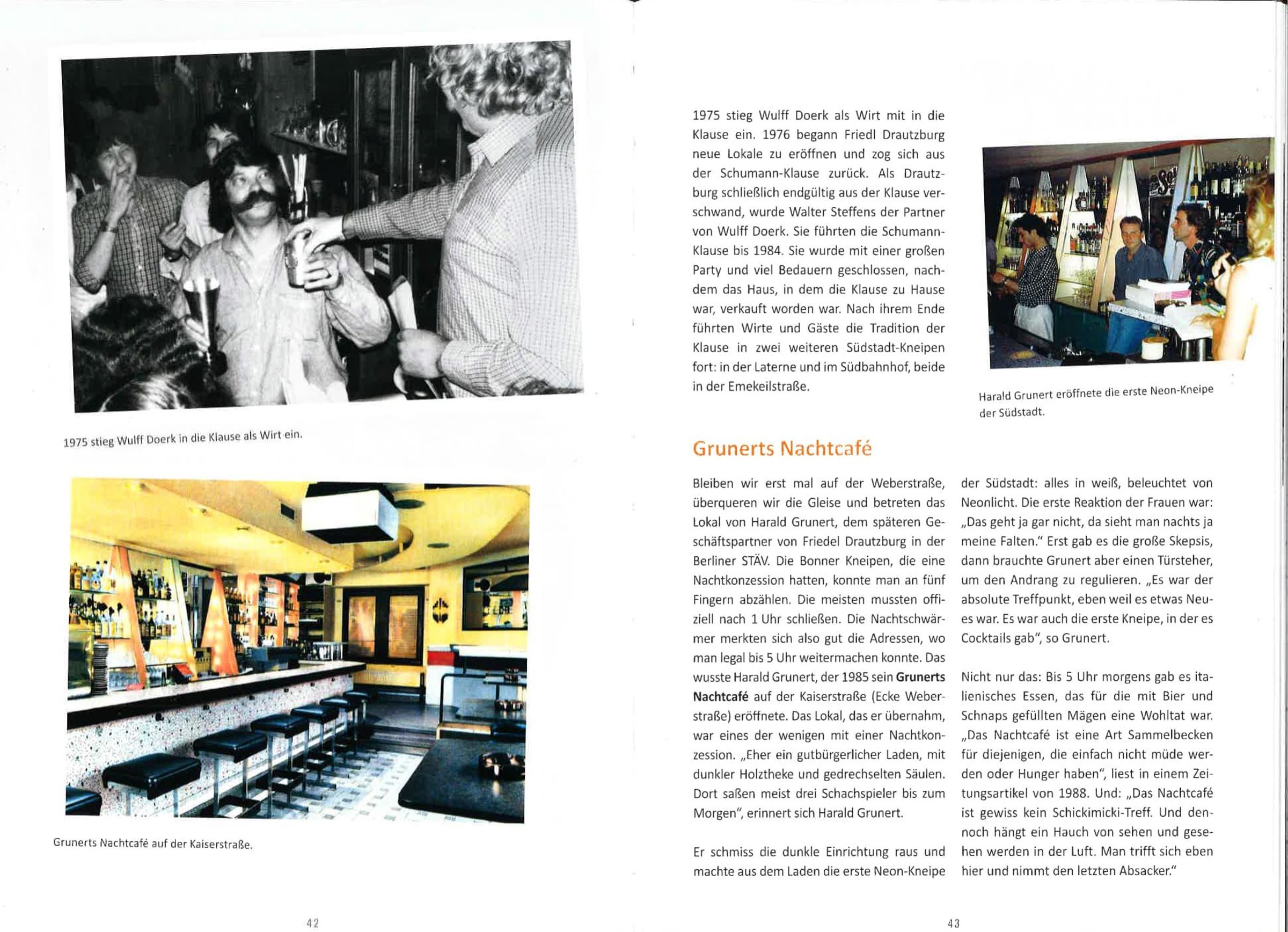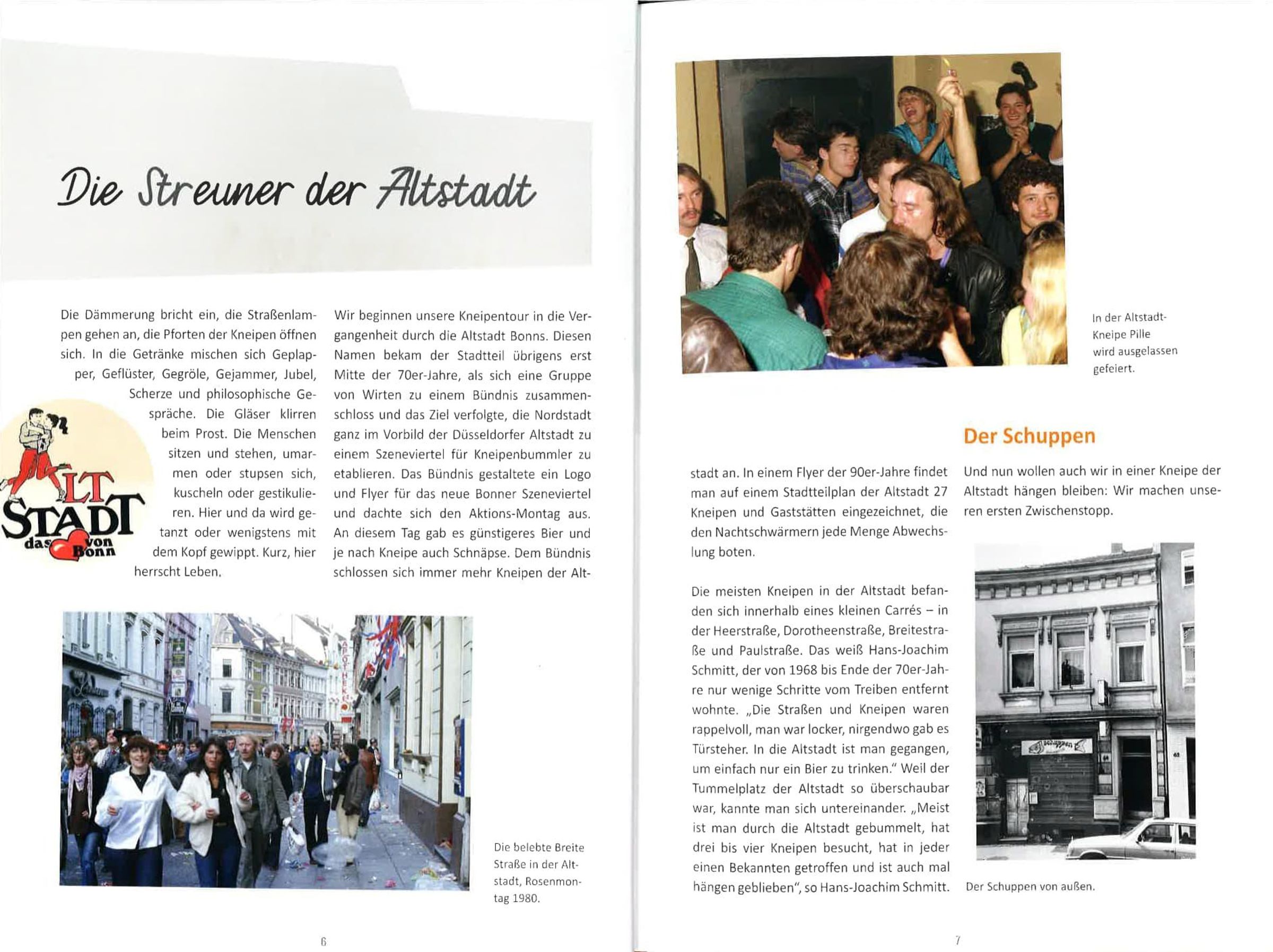 Wer aus dem einen Schuppen heraus stolperte, fiel in den nächsten wieder hinein. Wer um 1 Uhr nachts noch nicht genug hatte, wusste ganz genau, wo die Zapfhähne trotz Sperrstunde offen blieben. Und wem die Hörsäle nicht spannend genug waren, der verzog sich zum Philosophieren lieber in sein öffentliches Wohnzimmer: die Kneipe. Dicht an dicht fand man sie in Bonn und nun auch in diesem Buch. Schwärmen Sie aus in die Kultkneipen aus den 1960er- bis 1990er-Jahren in der Alt-, Süd- und Innenstadt und der Randbezirke der ehemaligen Bundeshauptstadt. Erleben Sie das Chaos und Getümmel, erinnern Sie sich an kultige Wirte, Barkeeper und Gäste der Kneipenszene. Und lassen Sie sich wie die Jugend der 60er in den Sog der Beatszene ziehen, die ganz Bonn und seine Lokale mit Musik erfüllte. Wir laden Sie ein zu einer Kneipentour in die Vergangenheit!