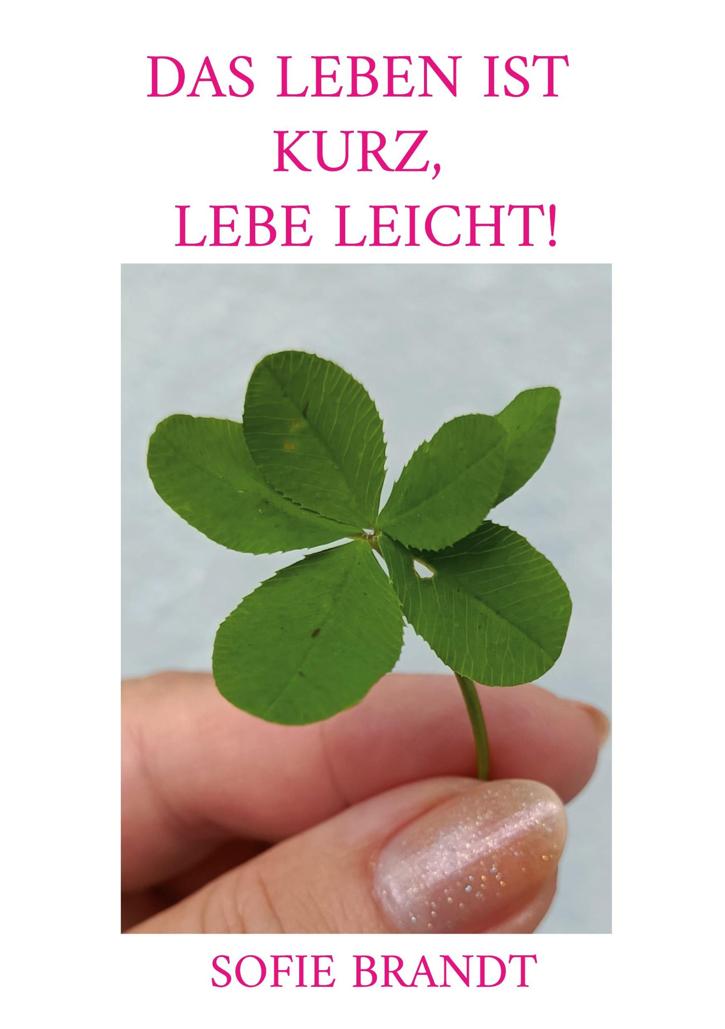 "Das Leben ist kurz, lebe leicht!" und "Sofie Brandt". Gezeigt wird eine Hand mit einem vierblättrigen Kleeblatt., Buch