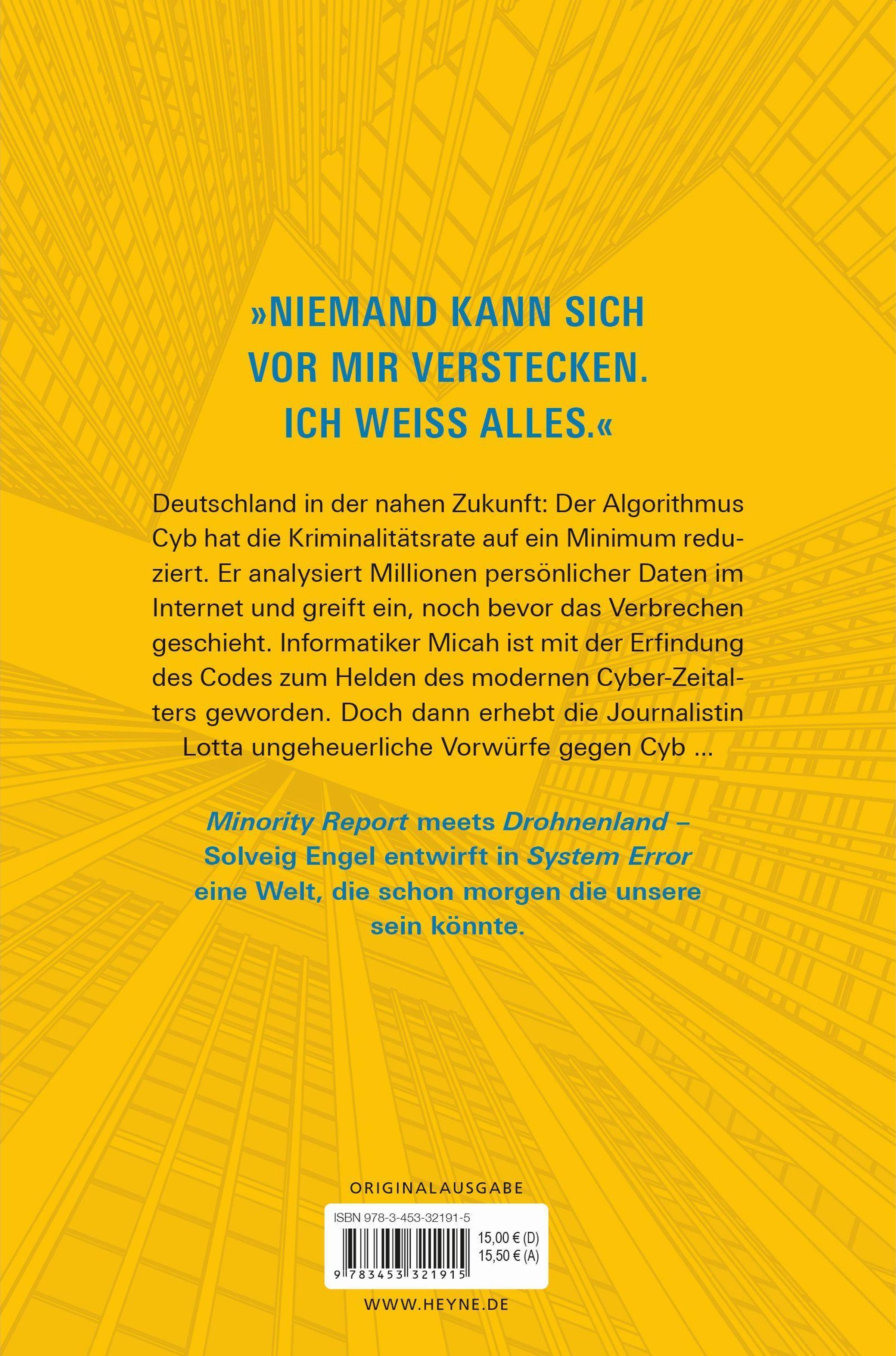Deutschland in der nahen Zukunft: Der Algorithmus Cyb hat die Anzahl der Verbrechen auf ein Minimum reduziert. Seine Berechnungen basieren auf der Analyse Tausender persönlicher Daten im Internet. Cyb greift ein, noch bevor die Tat verübt wird. Und mit jedem erfolgreichen Fall lernt die KI dazu. Visionär Micah ist mit der Programmierung des Codes zum Helden des modernen Cyber-Zeitalters geworden, und dank seines Geschäftspartners Kyle zu einem der reichsten Männer der Republik. Doch als die Journalistin Lotta Schwarz ungeheuerliche Vorwürfe gegen Cyb erhebt, gerät Micah in einen Strudel aus Machtpolitik und Intrigen ...