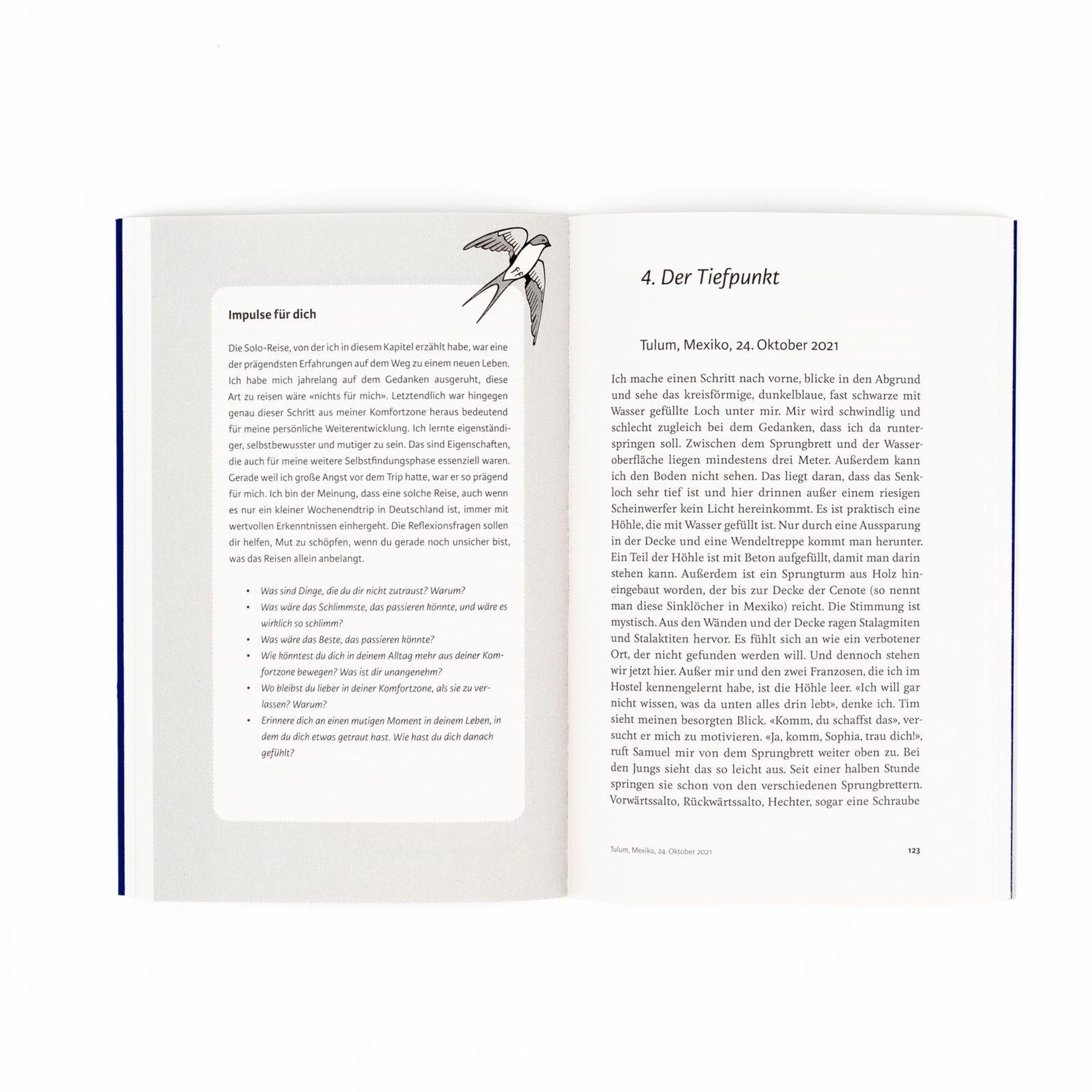 Influencerin und Podcasterin Sophia Haberkorn wagte 2022 den mutigen Schritt ins Ungewisse und wanderte nach Portugal aus. Wie sie diesen Mut nach einer schweren Trennung, einer toxischen Beziehung, einer mehrmonatigen Solo-Reise und dem Abschluss eines unerfüllenden Studiums aufgebracht hat, beschreibt sie empowernd und augenöffnend. Sie erzählt von Mondscheinnächten, staubigen Straßen und Träumen, die am Horizont tanzen, und zeigt, dass allein reisen, mutig sein und für sich einstehen immer belohnt wird.