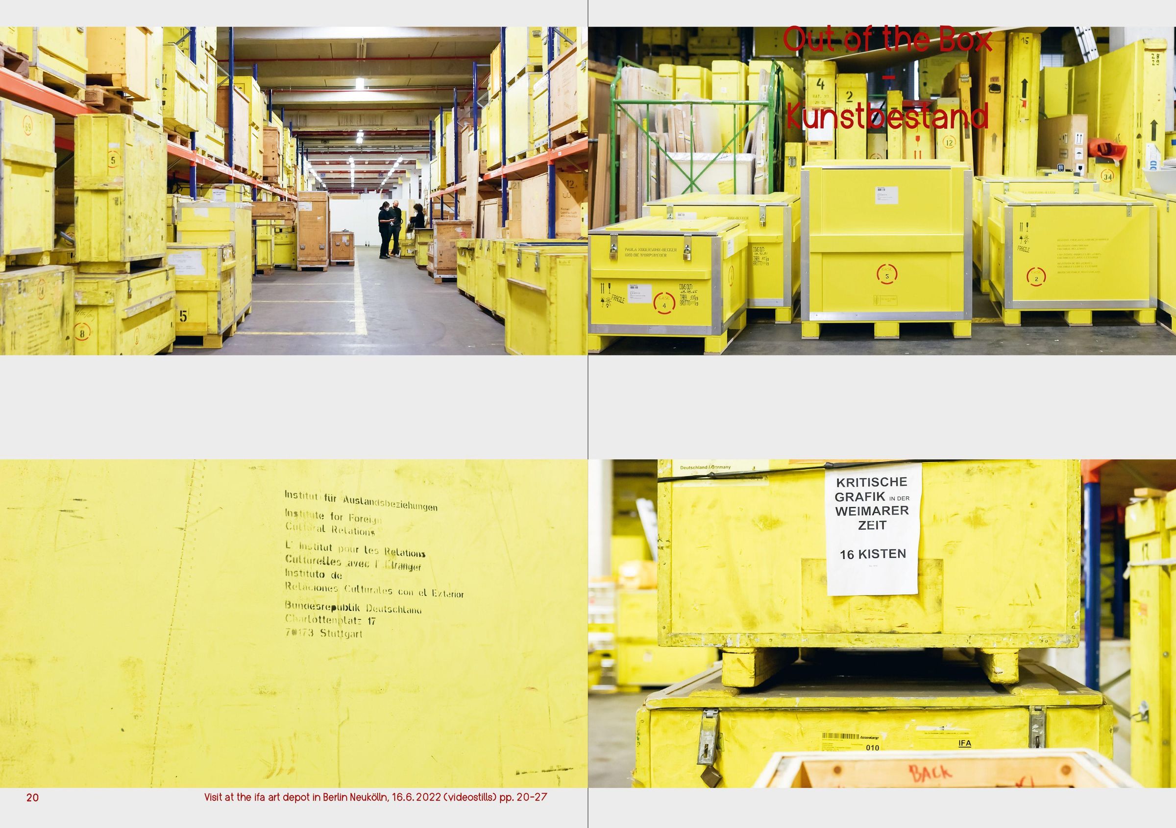 The ifa-Institut für Auslandsbeziehungen boasts a unique collection of nearly 24, 000 works of contemporary art from the twentieth and twenty-first centuries. About half of them were acquired for the touring exhibitions the ifa has mounted all over the world for over five decades; the other half came from the collection of the East German Zentrum für Kunstausstellungen der DDR (ZfK), which was transferred to the ifa in 1991. The holdings include works by artists like Otto Dix, Hannah Höch, Rosemarie Trockel, Wolfgang Tillmans, Helga Paris, Joseph Beuys, and Nasan Tur; a research project studying the provenance of the works and the social and political circumstances and trends of the acquisitions was launched in 2022.