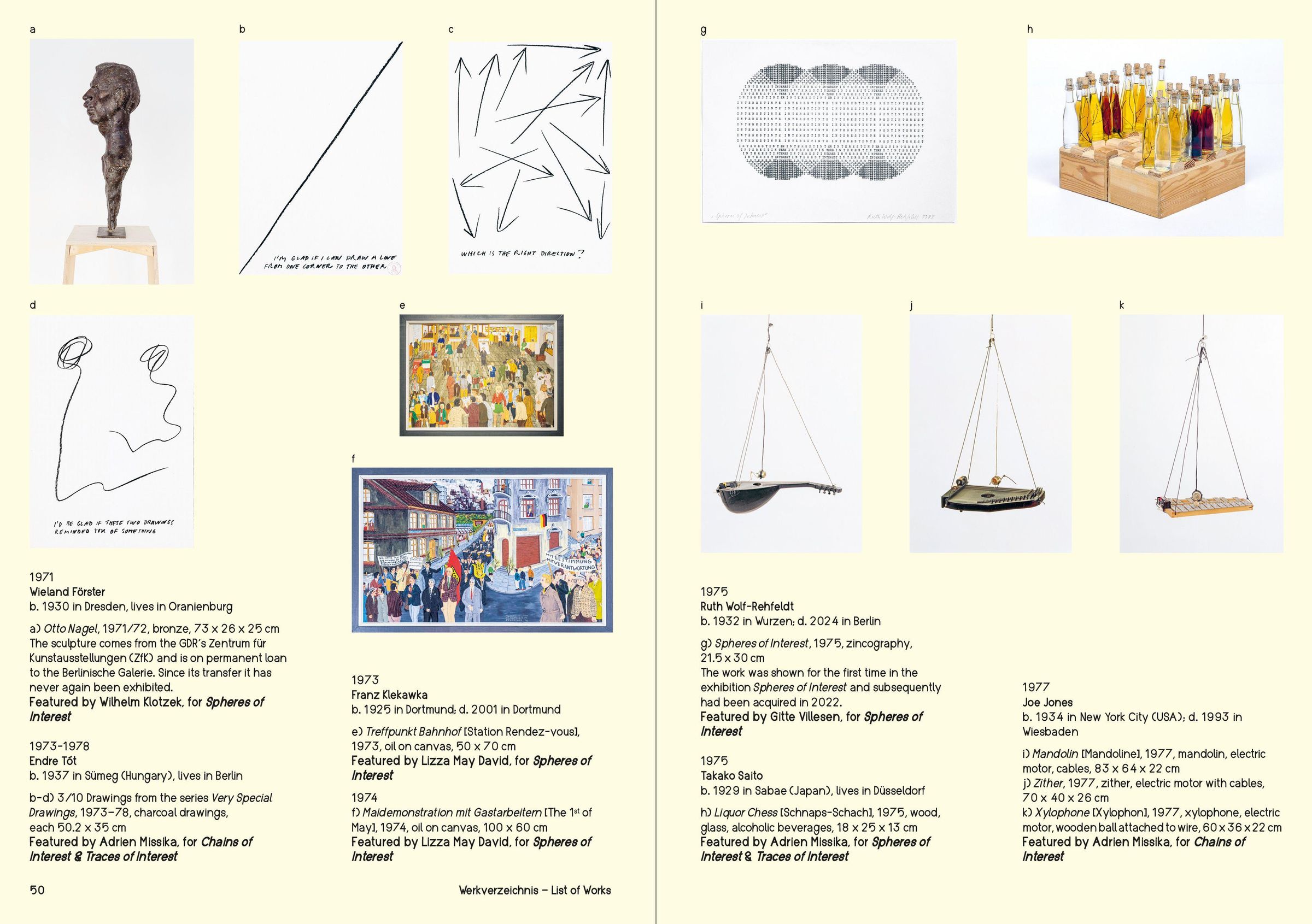Die besonderen Strukturen und Ausstellungsgeschichten der ifa Sammlung ebenso wie ihre Prägung durch die Übernahme der DDR-Bestände bilden den Ausgangspunkt einer gemeinsamen künstlerisch-kuratorischen Untersuchung. Dafür luden die Kuratorinnen Inka Gressel und Susanne Weiß die Künstler*innen Isaac Chong Wai, Lizza May David, Wilhelm Klotzek, Ofri Lapid, Adrien Missika und Gitte Villesen ein, sich mit dem Archiv, der Sammlung und den Erzählungen zur Institutsgeschichte auseinanderzusetzen. Spheres of Interest zeichnet diese Recherchen sowie die begleitenden Ausstellungen in den ifa-Galerien Berlin und Stuttgart nach und ergänzt sie durch eine bebilderte Werkliste, Textbeiträge der Kuratorinnen sowie Interviews mit den beteiligten Künstler*innen.