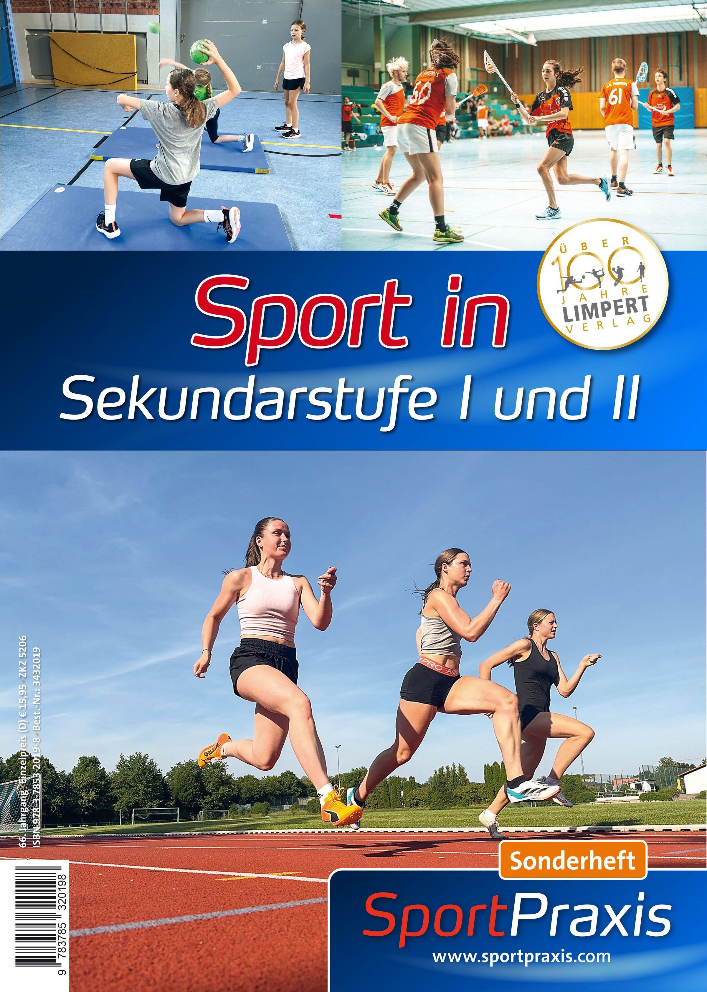 „Sport in Sekundarstufe I und II“, „Sonderheft SportPraxis“, zeigt Sportler in verschiedenen Disziplinen., Buch