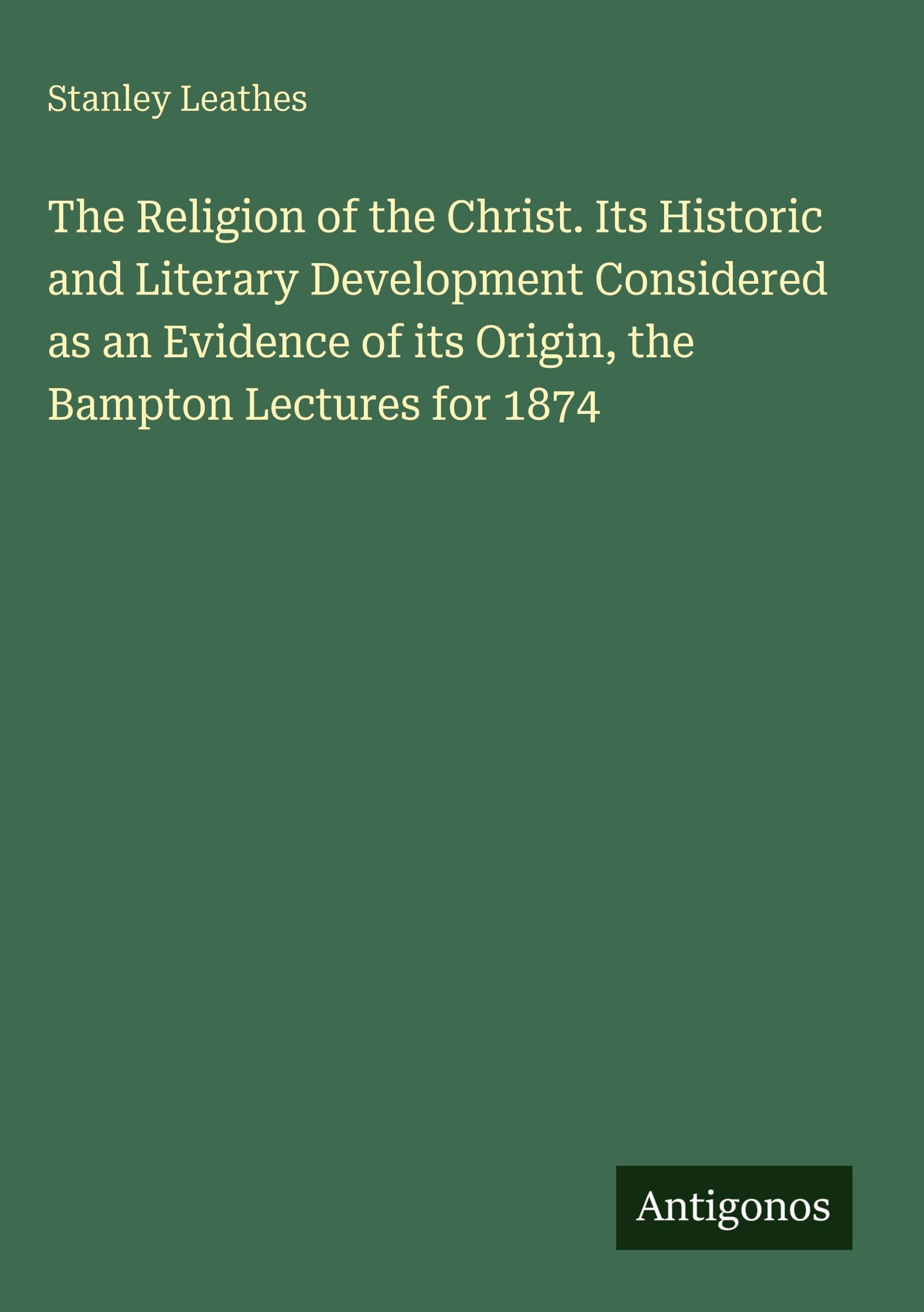 The Religion of the Christ. Its Historic and Literary Development Considered as an Evidence of its Origin, the Bampton Lectures for 1874