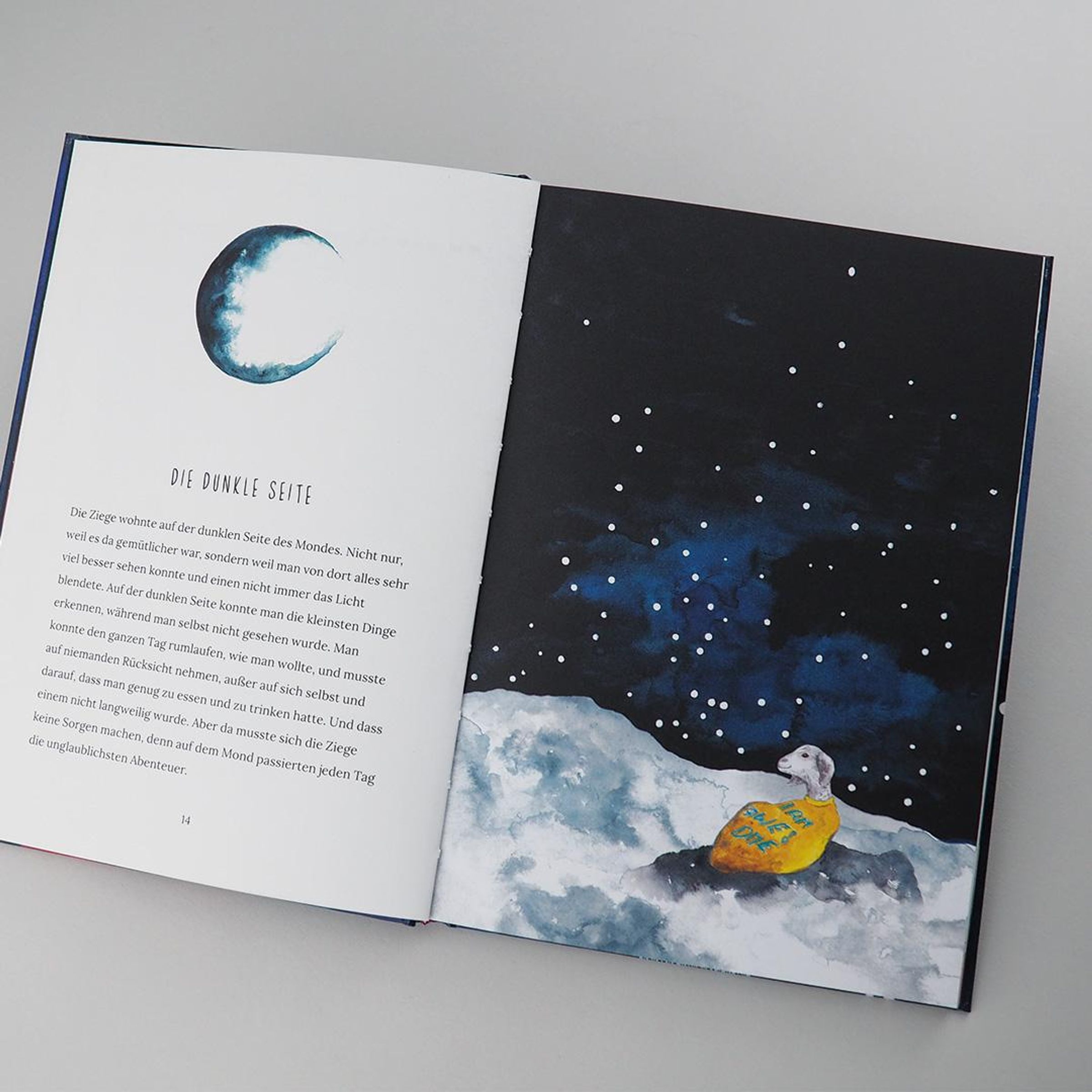 Die Ziege lebt auf dem Mond - allein, aber glücklich. Jeden Tag landen Dinge auf dem Mond, die die Ziege neu benennen muss. Es sind hübsche und traurige Dinge, nützliche und gefährliche, aus denen sich die Ziege ihr Leben baut. Ganz ohne Zeitdruck kann sie dem Flüstern der Sterne lauschen und im Traum den Ozean schmecken. Bis etwas Großes im Mondkrater landet, das Geräusche macht und lebendig scheint. Etwas Geheimnisvolles, Schönes, das sich beim Darüber-Nachdenken verändert - und das den ganzen Mut der Ziege fordert. Ein Buch voller Wunder, das zeigt, wie reich, verrückt und poetisch das Leben ist - und ein philosophisches Abenteuer für Kinder und Erwachsene, die das Staunen nicht verlernt haben.