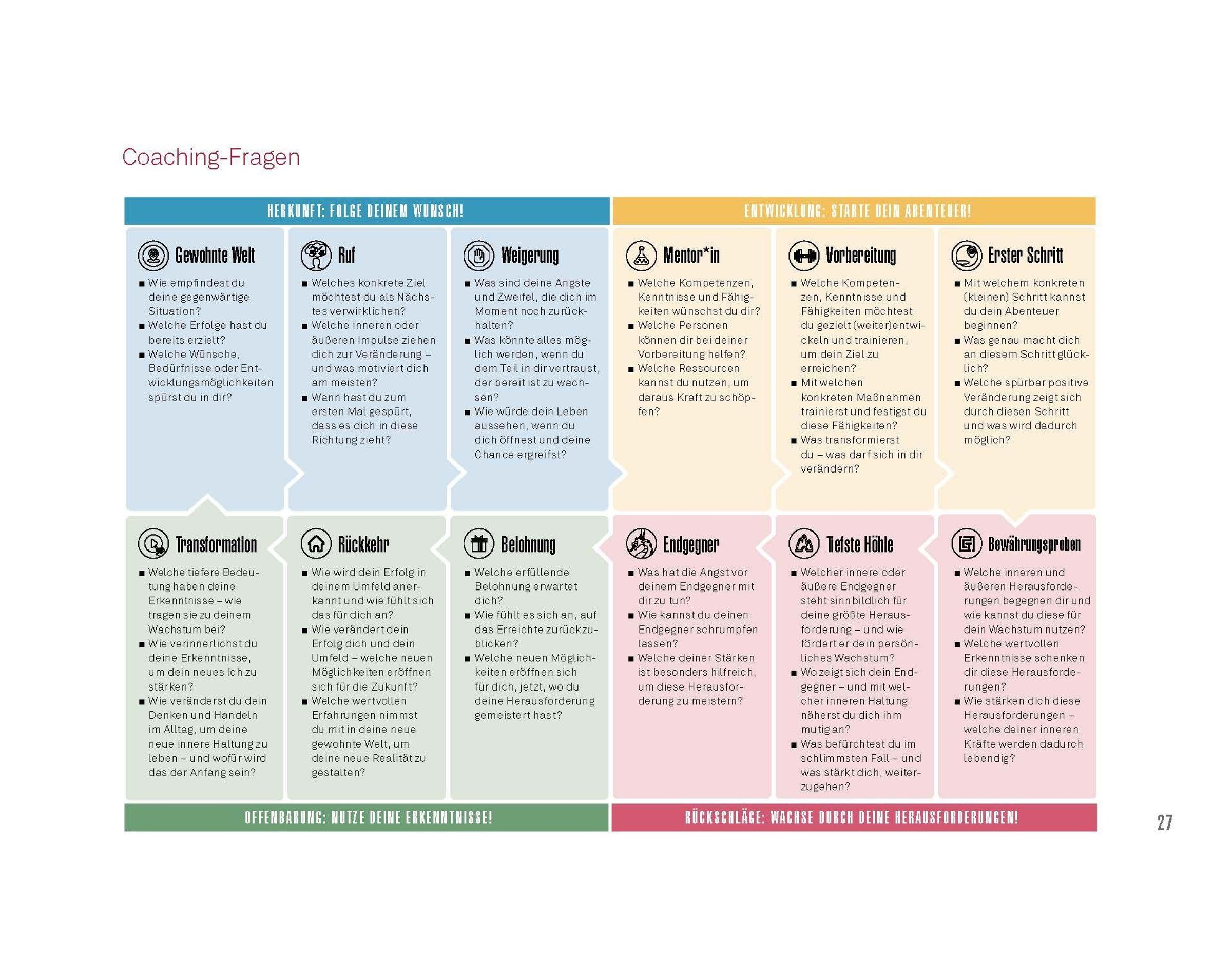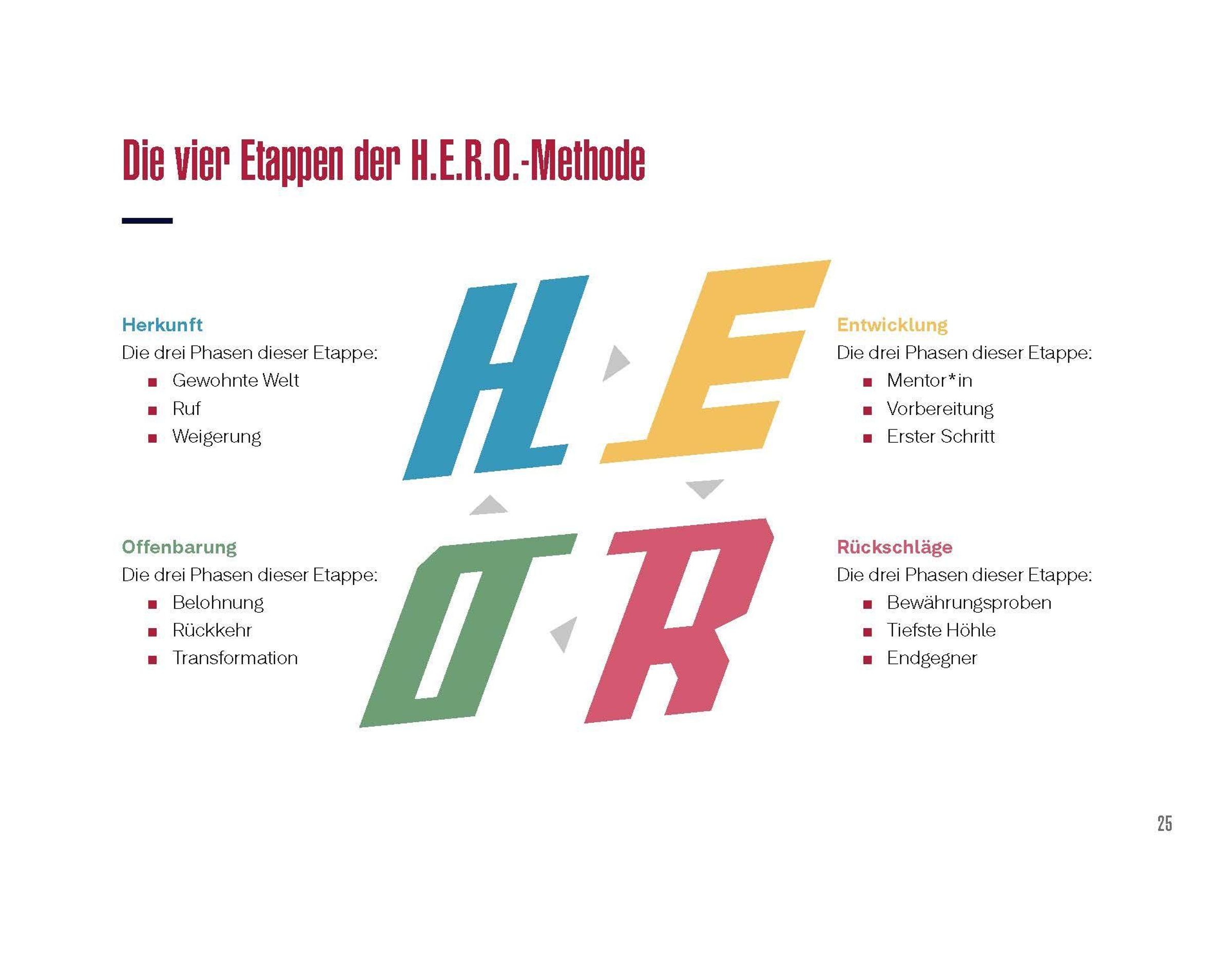 Die Hero-Methode ist ein interaktives Selbstcoaching-Tool, das Menschen dabei unterstützt, ihre persönliche Heldenreise bewusst zu gestalten, zu reflektieren und weiterzuentwickeln. Sie hilft dabei, innere Prozesse sichtbar zu machen und fördert ein tiefes Verständnis für den eigenen Weg. Auf einen Blick wird erkennbar: Jeder Mensch ist der Held seiner ganz eigenen Reise. Digital zum Download oder analog direkt im Buch findest du heraus, in welcher Station deiner Reise du dich befindest und wohin die Reise gehen kann.