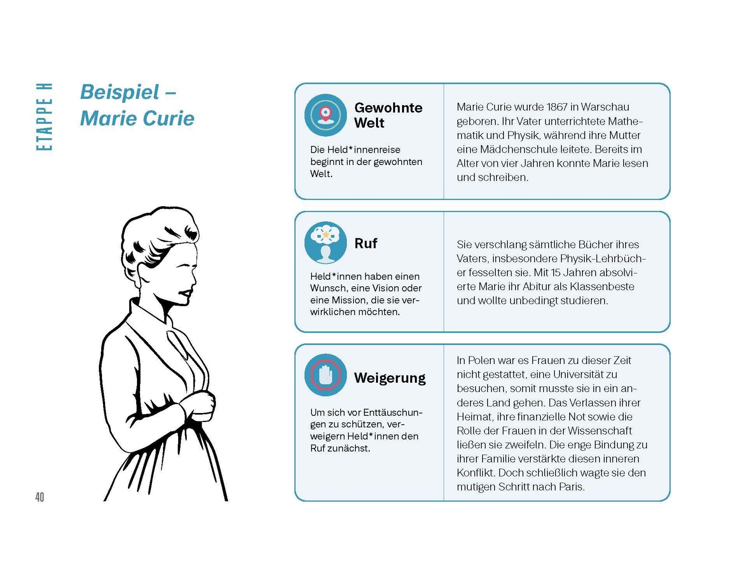 In einem interaktiven Workbook-Format lernst du Schritt für Schritt und anhand inspirierender Lebensgeschichten weltberühmter Held*innen von Marie Curie bis Thomas Alva Edison, wie du deine eigene Heldenreise planst und dein volles Potential entfaltest.