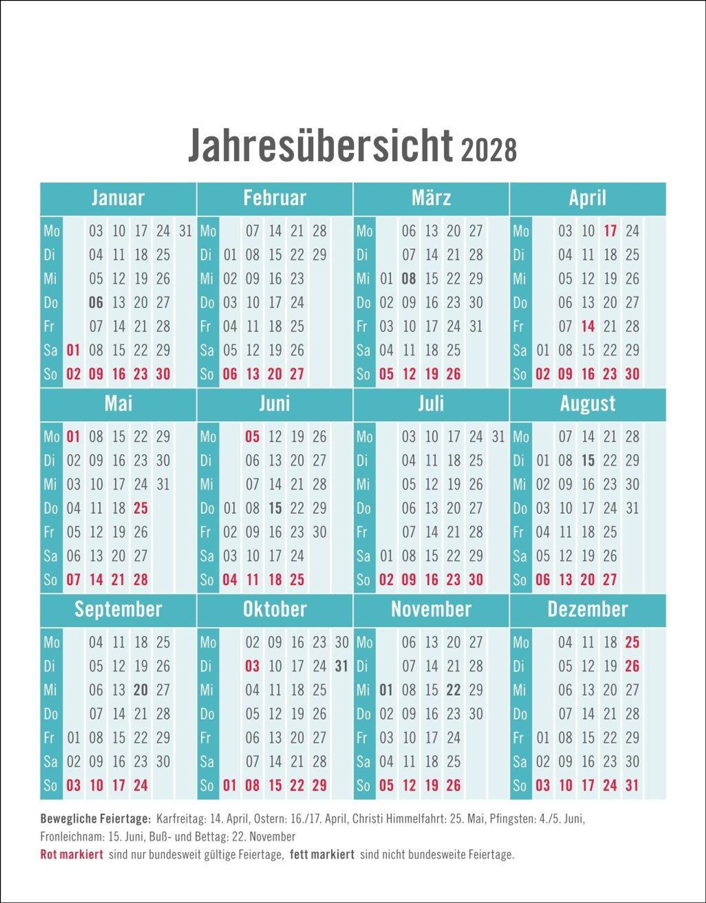 Findet Platz auf jedem Nacht- oder Küchentisch: Kalender zum Aufstellen im kompakten Format 12, 5 x 16 cm