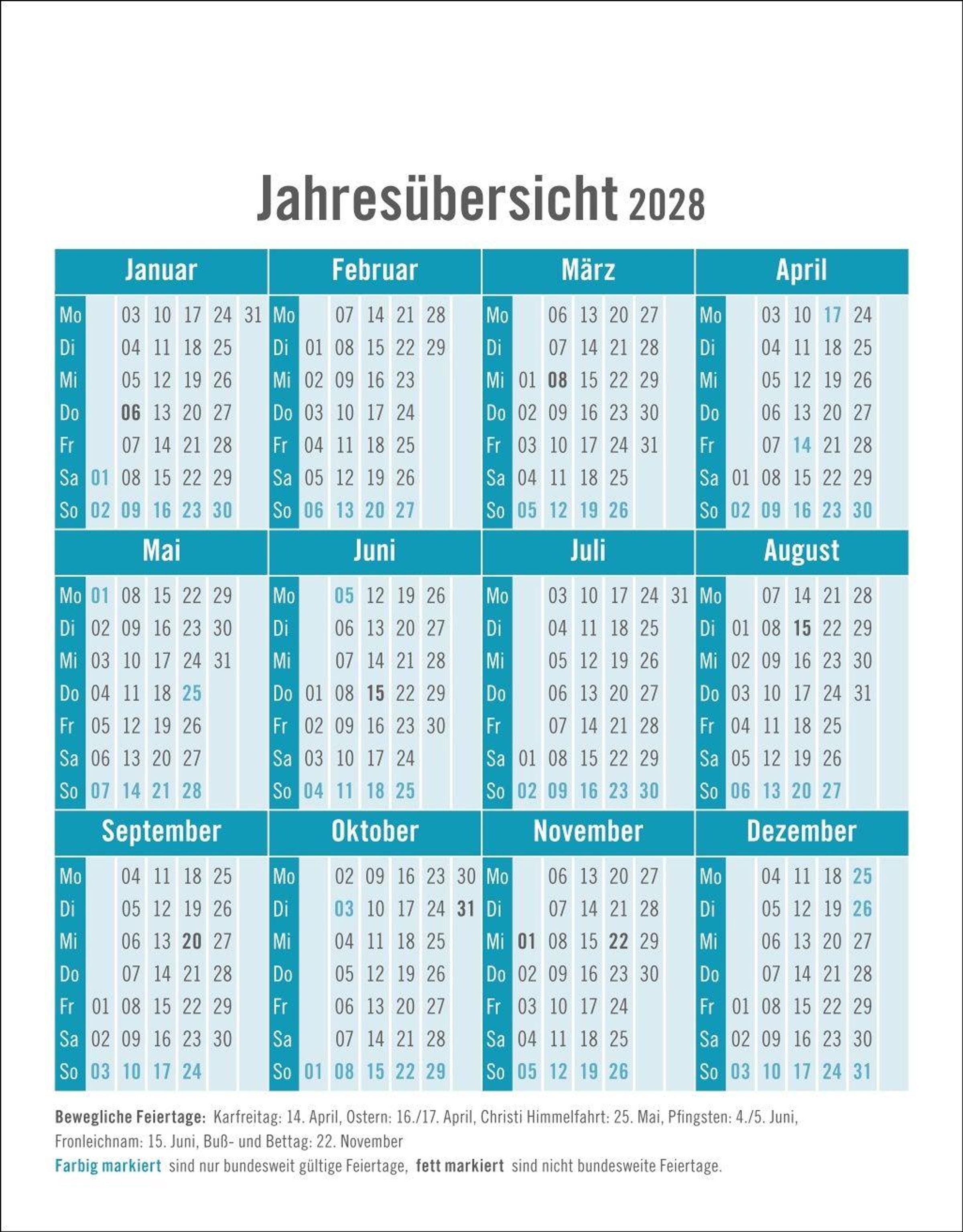 Findet Platz auf jedem Nacht- oder Bürotisch: Kalender zum Aufstellen im kompakten Format 12, 5 x 16 cm