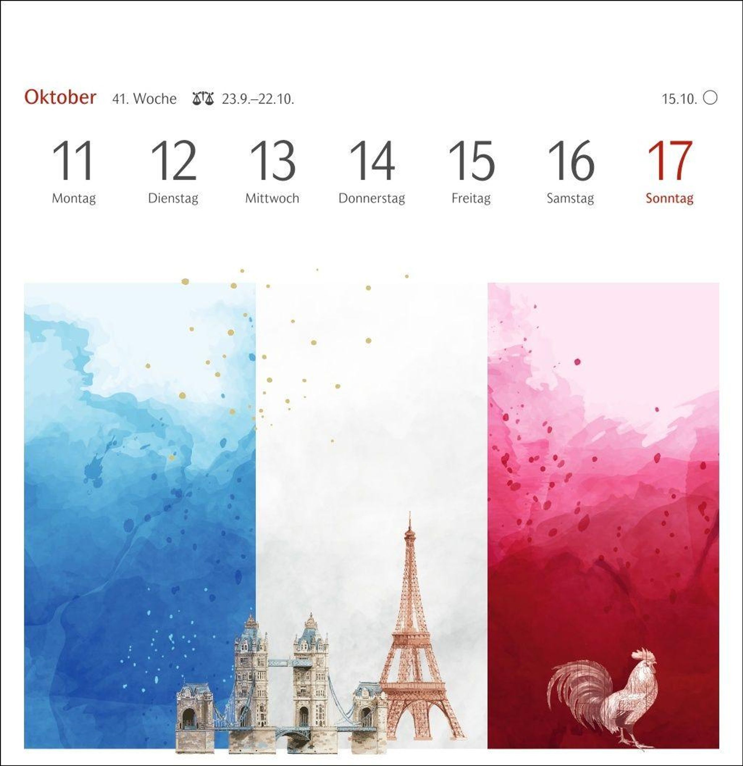 Kalender zum Aufstellen als dekorativer Hingucker: innovative Collagen-Kunst im Format 16, 5 x 17, 7 cm