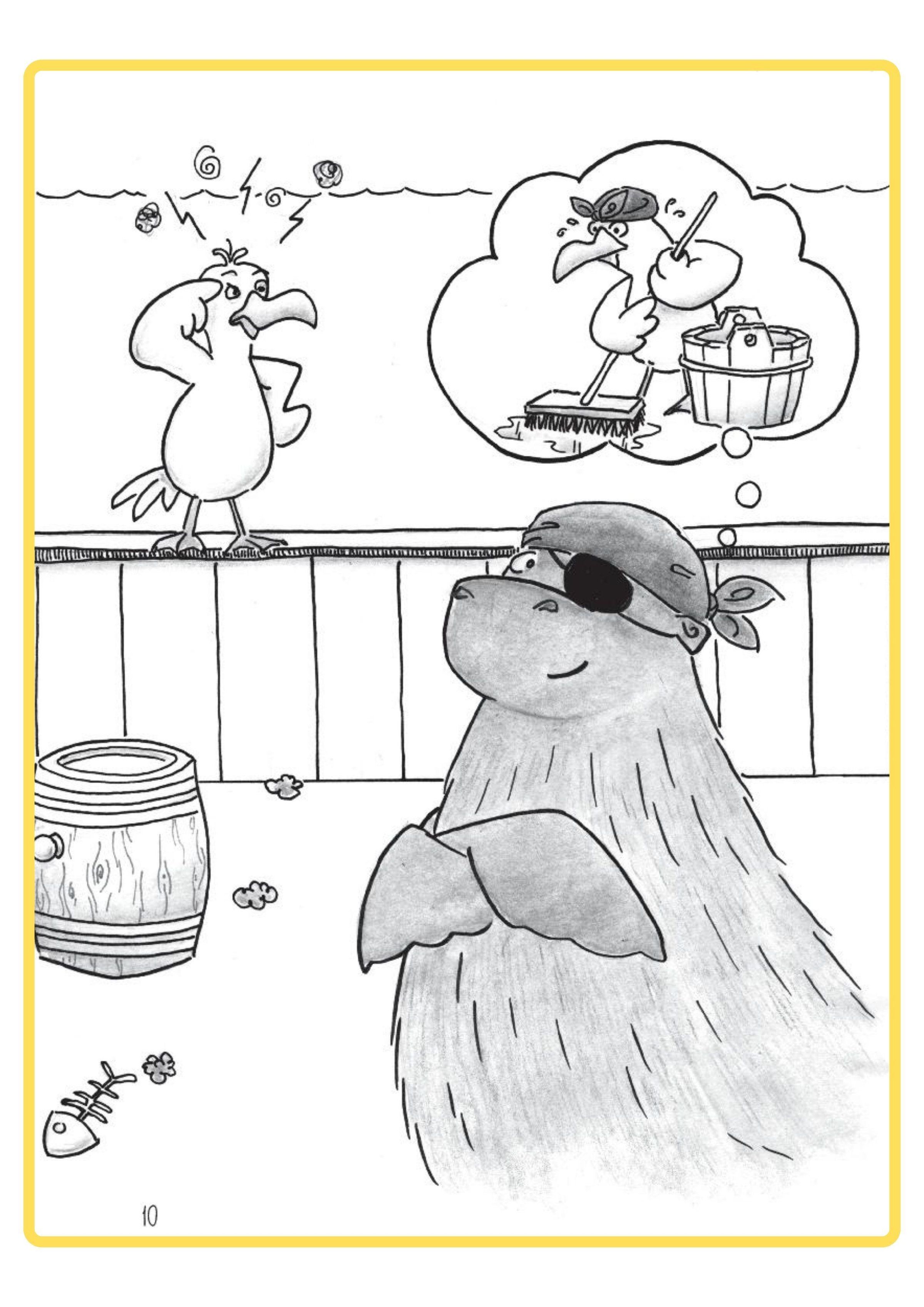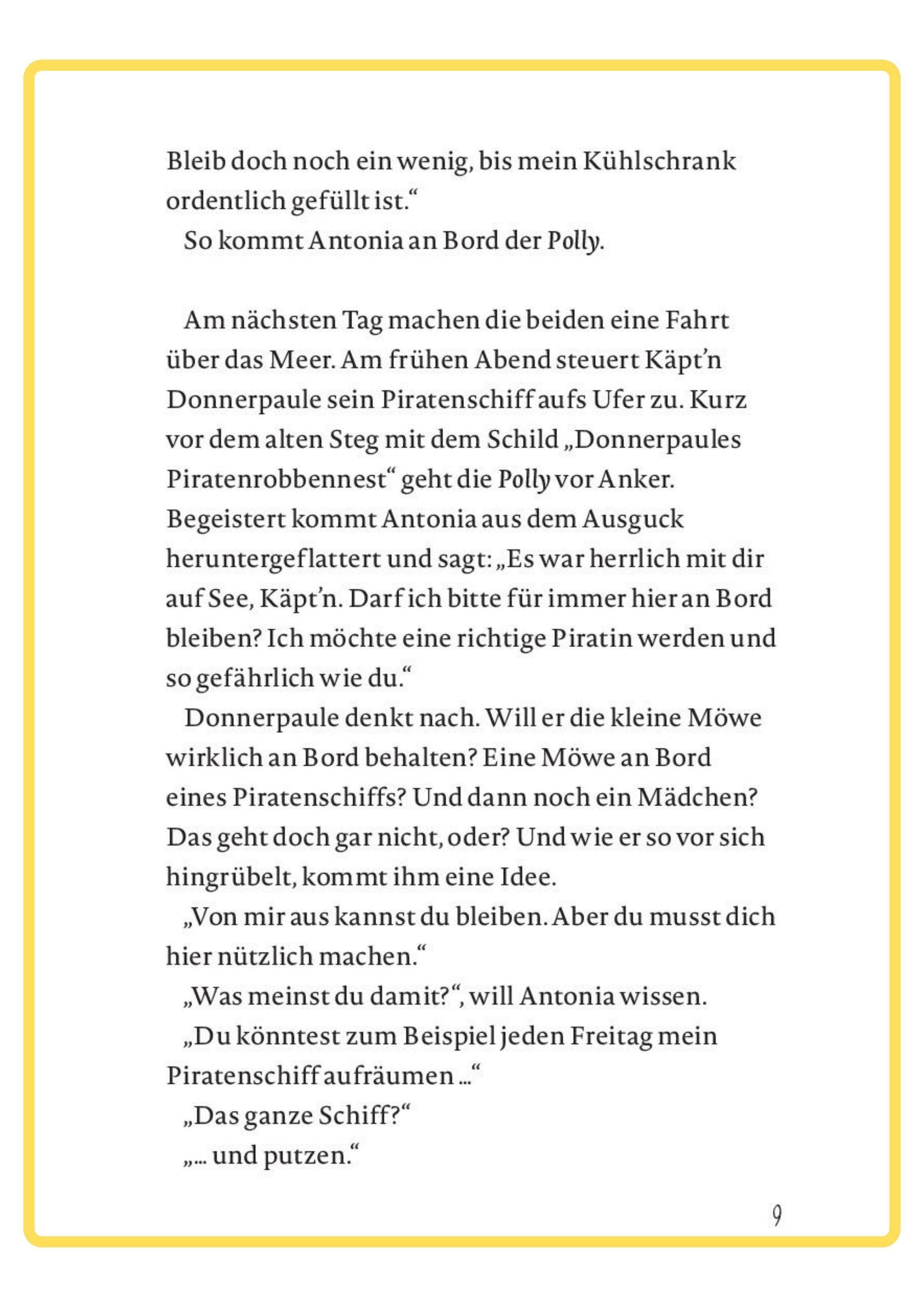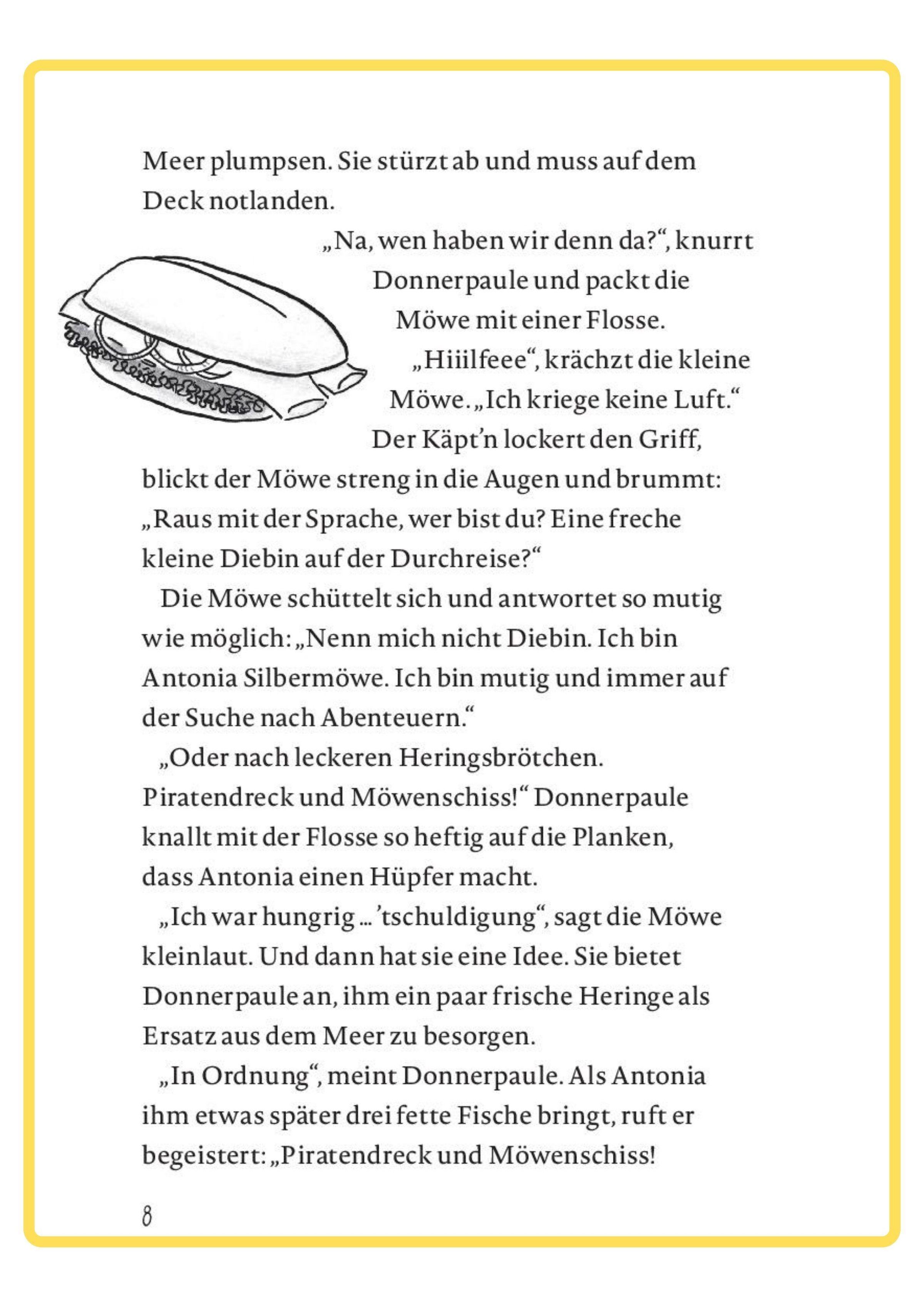 Käpt'n Donnerpaule kann es nicht glauben. Da klaut ihm diese freche Möwe einfach sein Heringsbrötchen! Zuerst sieht es nicht so aus, als ob die blaue Robbe und Möwe Antonia sich verstehen würden. Aber dann wird Antonia sogar seine Matrosin und sie beginnen ihr erstes Abenteuer.