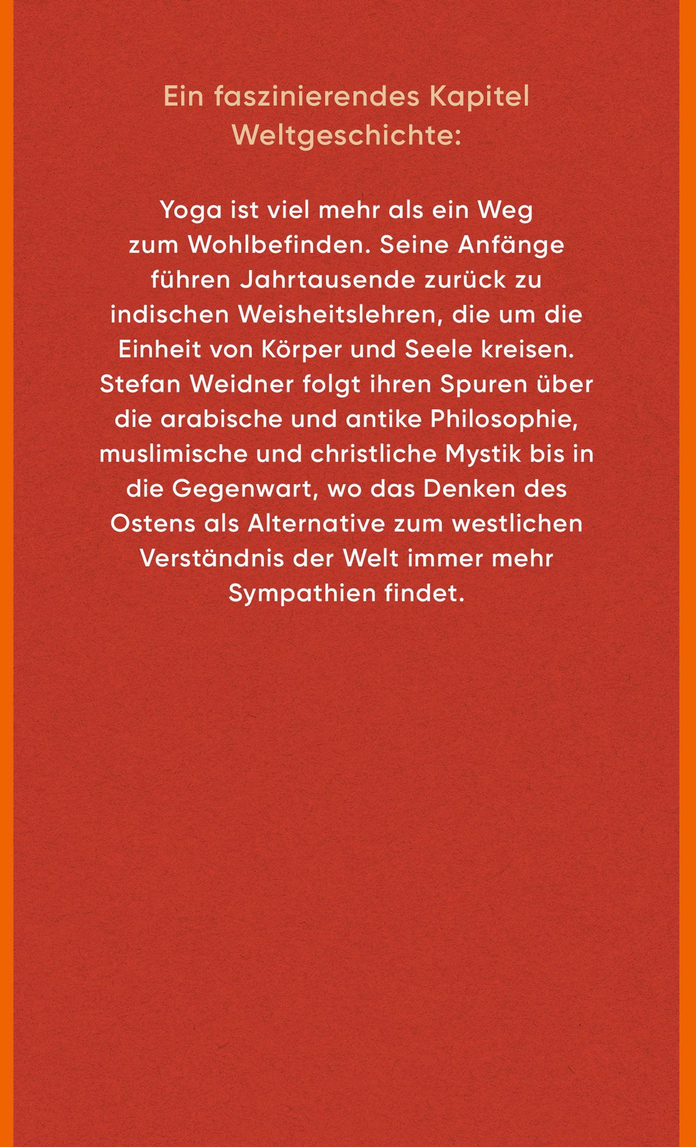 Morgens die Yogamatte auszurollen gehört für viele Menschen zur Routine. Ahnen sie, in welcher Tradition sie stehen? 2500 Jahre sind die ersten Yoga-Sutren alt, Anweisungen für eine spirituelle Praxis, die von Buddhismus und Hinduismus aufgegriffen wurde. Im Mittelalter von den Arabern wiederentdeckt, inspirierte sie auch Muslime, Christen und Juden zu einer mystischen Gotteserfahrung. Philosophen wie Schopenhauer entdeckten in der altindischen Lehre die Möglichkeit reiner Erkenntnis, im Kampf gegen die Kolonialherrschaft brachte sie das europäische Überlegenheitsgefühl ins Wanken. Stefan Weidner erzählt die Geschichte des Yoga als die sanfte Kraft des Ostens, die sich des Westens bemächtigt hat: ein Blick auf die Welt, der alle Grenzen überwindet.