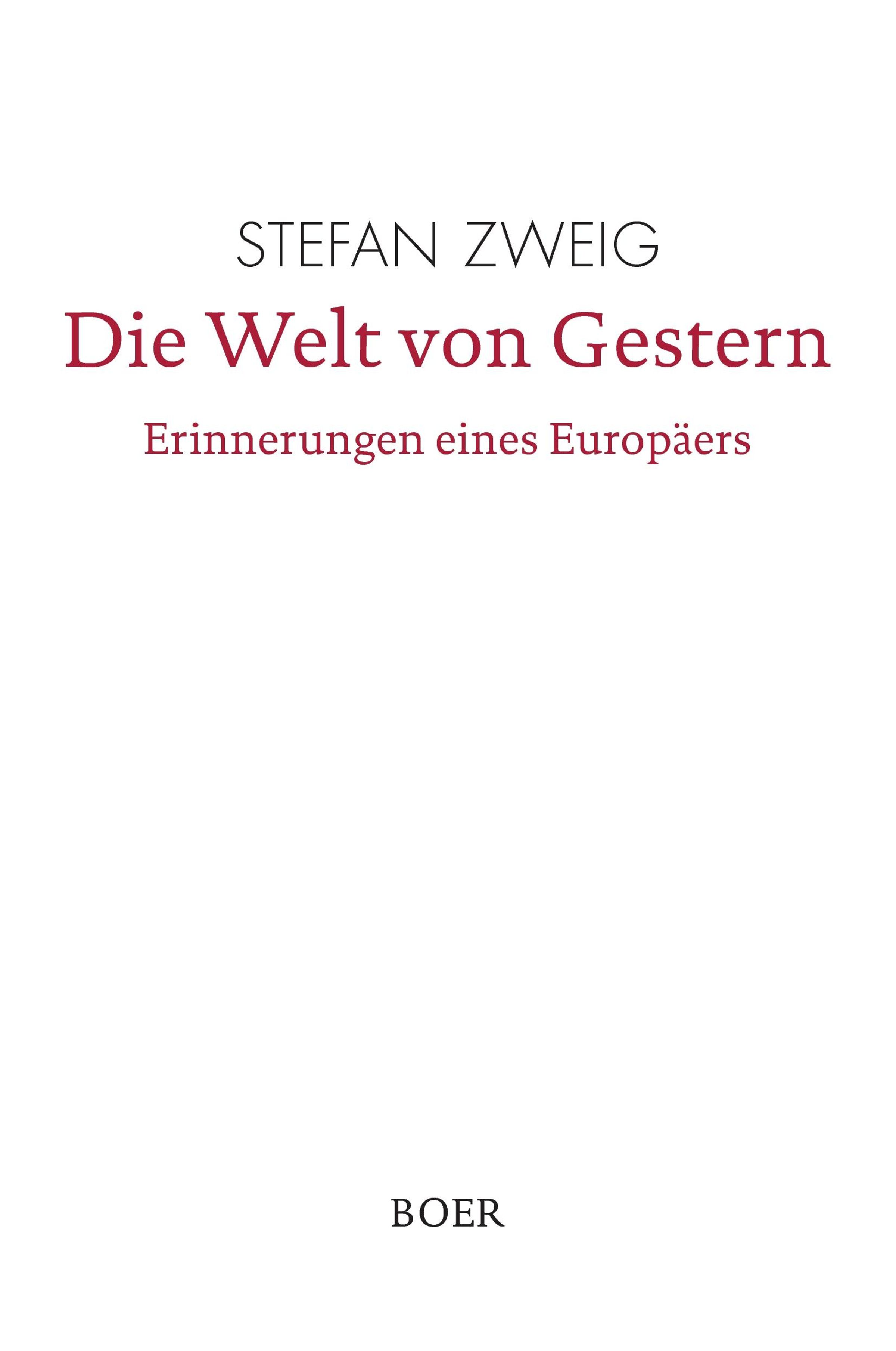 Das Buch entstand kurz vor Zweigs Tod in den letzten Jahren (von 1939 bis 1941) seines Exils und erschien postum 1942 in Kooperation der Verlage Hamish-Hamilton London und Bermann-Fischer Verlag in Stockholm. Das Buch zeichnet sich durch die persönliche Nähe aus, die der Leser durch die fein gewobene literarische Struktur zum Ich-Erzähler bekommt. Das Werk verbindet damit den objektiven Blick auf die Kultur des alten Europas mit seinem Schwerpunkt auf Wien und die österreichisch-ungarische Monarchie. Das Werk enthält teilweise persönliche Innenansichten des Ich-Erzählers. Inwieweit Zweig sein persönliches Leben in diesem Buch dargestellt oder eben herausgehalten hat, ist umstritten. Zweig beschreibt die Kultur, die Mode, das Leben der Jugendlichen, das Erziehungssystem, die Sexualmoral und das Wertesystem der Gesellschaft. [Wikipedia]