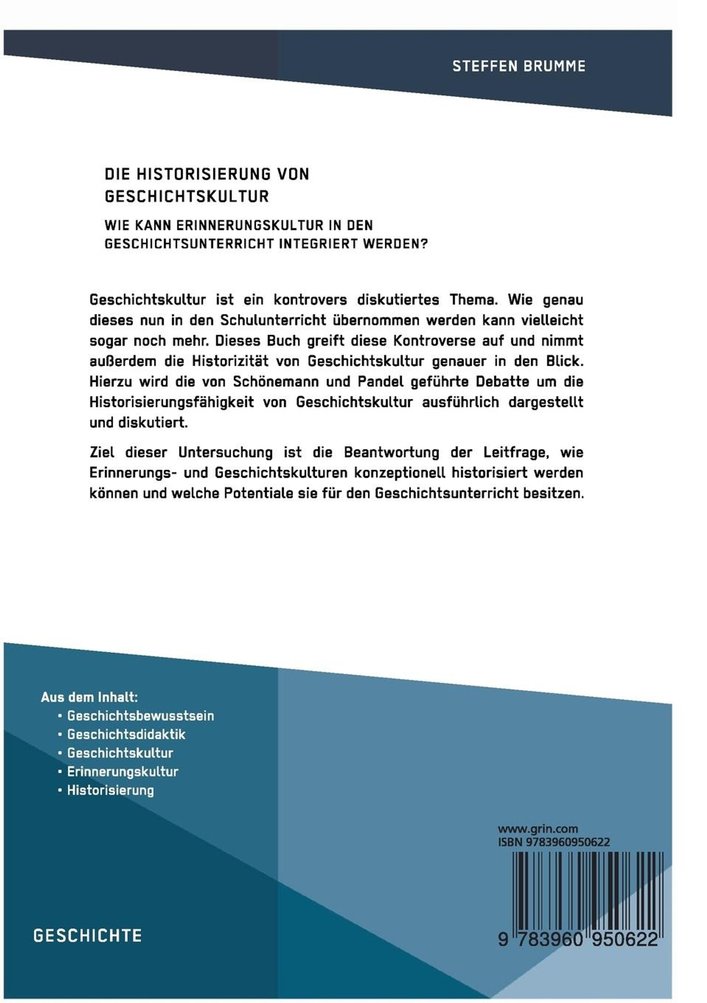 Der Artikel Steffen Brumme: Die Historisierung von Geschichtskultur. Wie kann Erinnerungskultur in den Geschichtsunterricht integriert werden? wurde in den Warenkorb gelegt.
