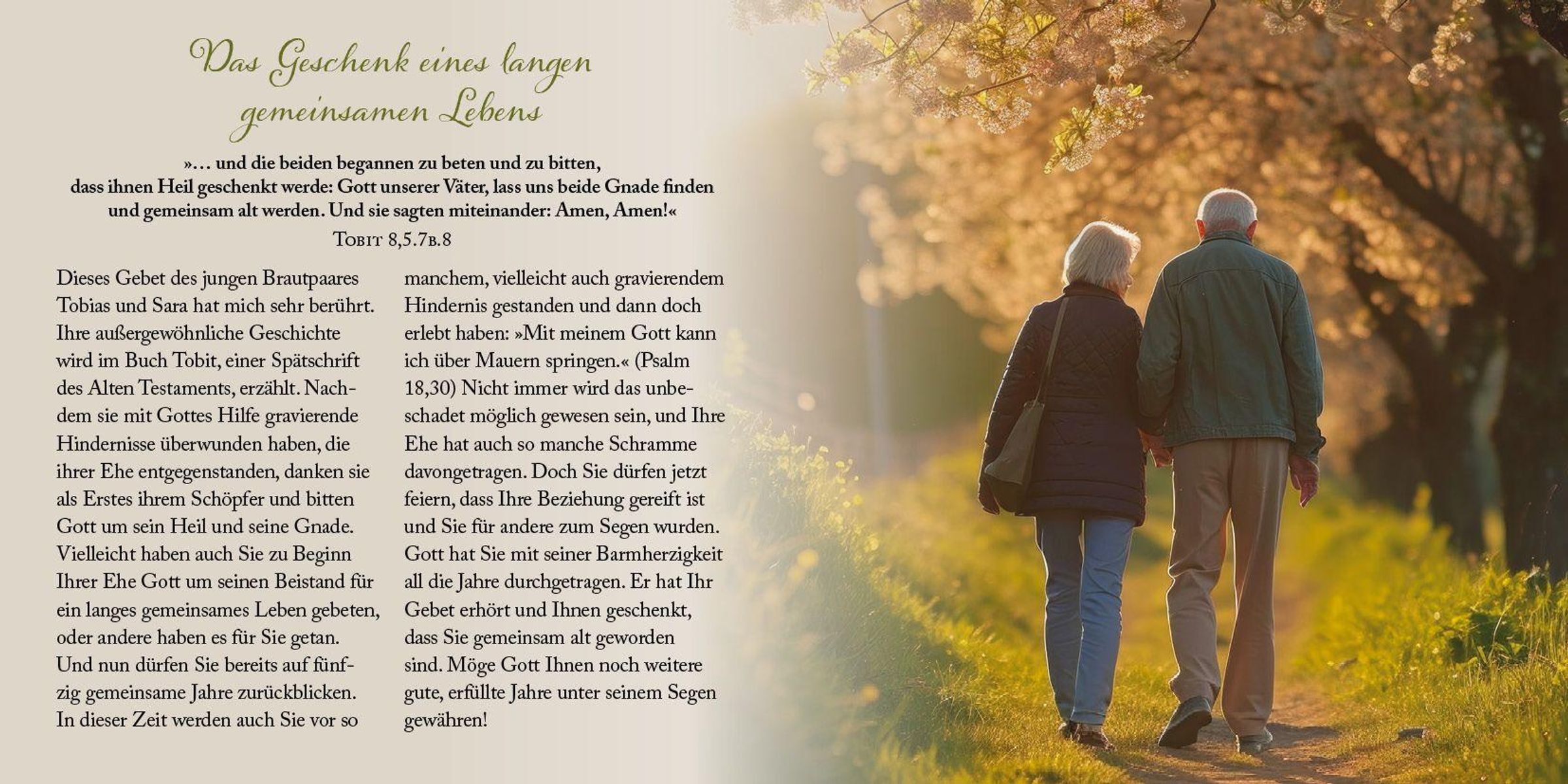 Fünfzig Jahre gemeinsames Leben, in guten wie in herausfordernden Zeiten - das ist Grund zum Staunen. Zur Freude. Zum dankbaren Erinnern an viele wundervolle Momente. Zum nachdenklichen Rückblick auf schwere Zeiten, gemeistert im Vertrauen auf Gott und in Treue zueinander. Zum erwartungsvollen und hoffnungsfrohen Vorausblick auf - möge Gott es schenken - noch viele weitere gesegnete gemeinsame Jahre. Dabei begleiten die Impulse in diesem Heft: biblisch, einfühlsam, lebensnah und inspirierend.