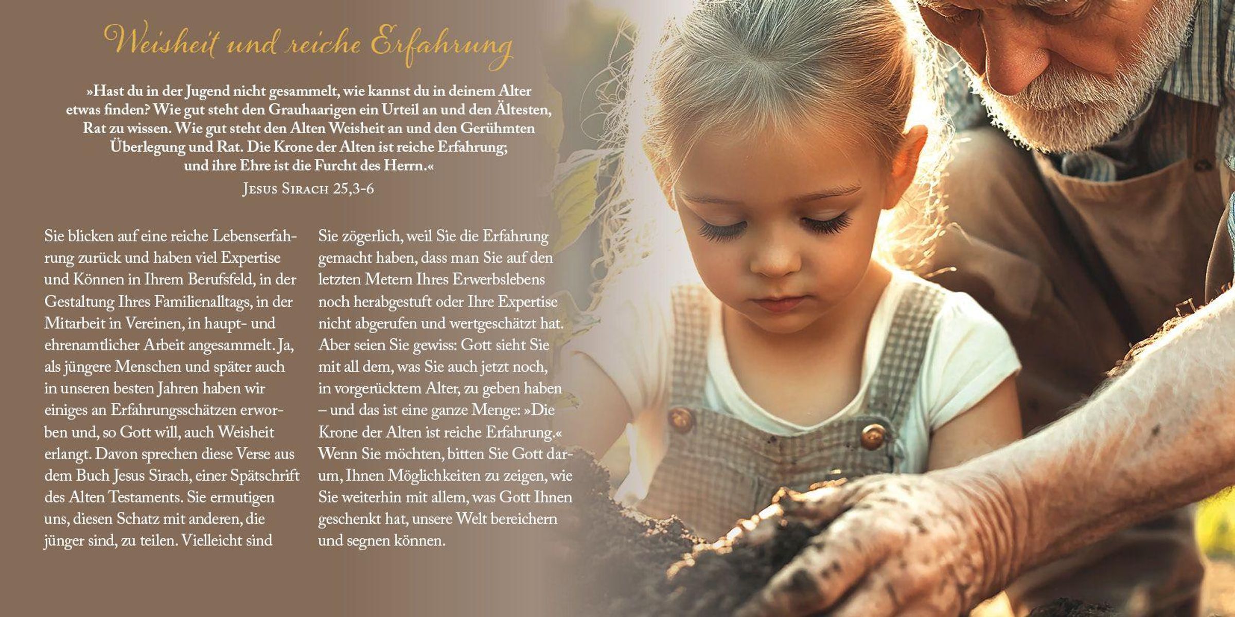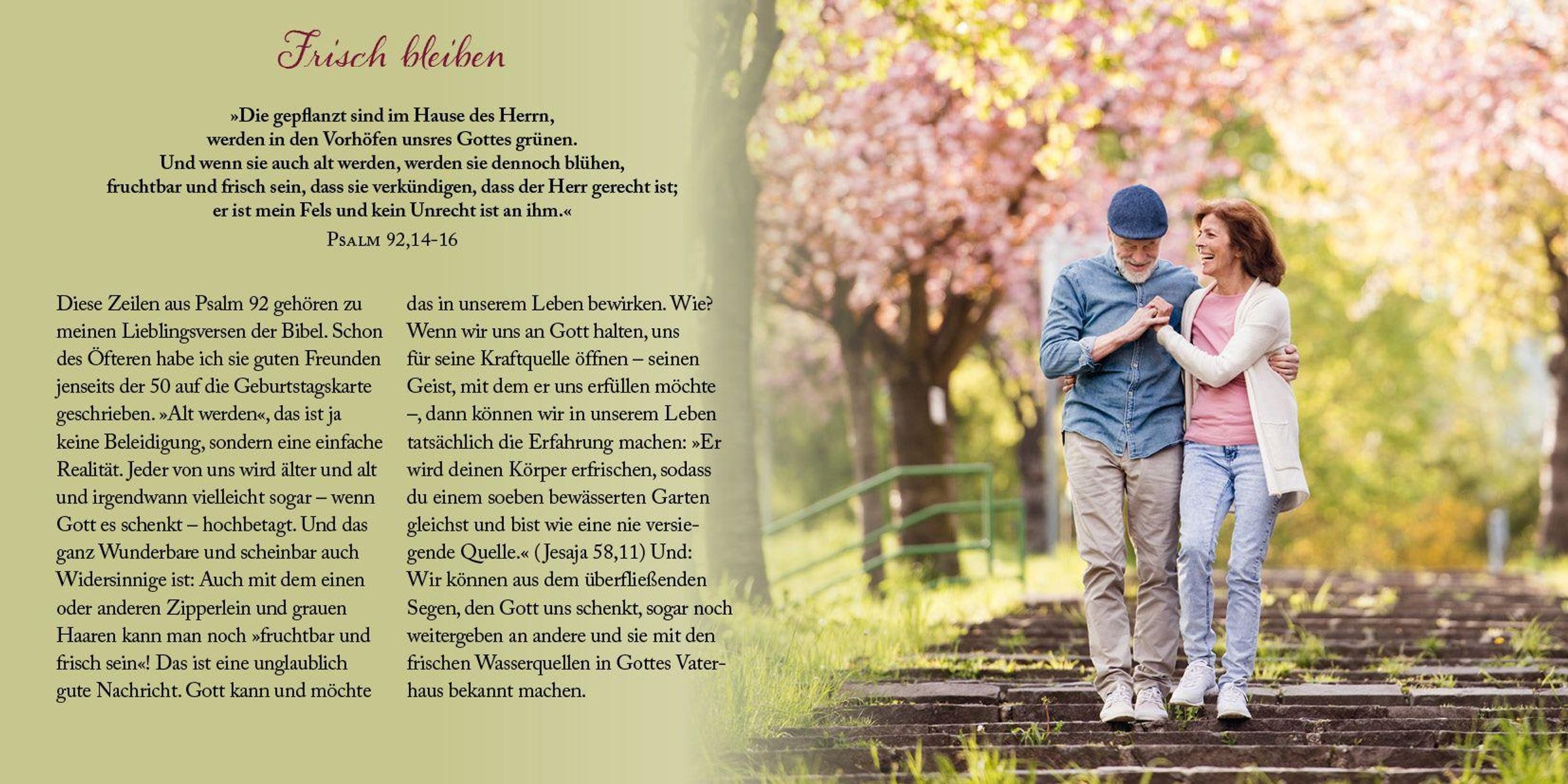 Ein neuer Lebensabschnitt beginnt: der Ruhestand. Manche freuen sich auf die gewonnene Freiheit, andere blicken mit gemischten Gefühlen in die Zukunft. Doch gerade diese Zeit birgt die Chance, zu einer wertvollen und segensreichen Lebensphase zu werden. Denn auch nach dem Berufsleben gibt es viel zu gestalten und weiterzugeben: Ihre Erfahrung, Ihre Träume, Ihre Zeit. Mit Gott an Ihrer Seite können Sie eine neue Wachstumsphase erleben, blühen, Früchte tragen, Weisheit weitergeben und gemeinsam mit der nächsten Generation Visionen für die Zukunft entwickeln. Lassen Sie sich inspirieren, diesen Abschnitt voller Vertrauen, Freude und Zuversicht zu leben.
