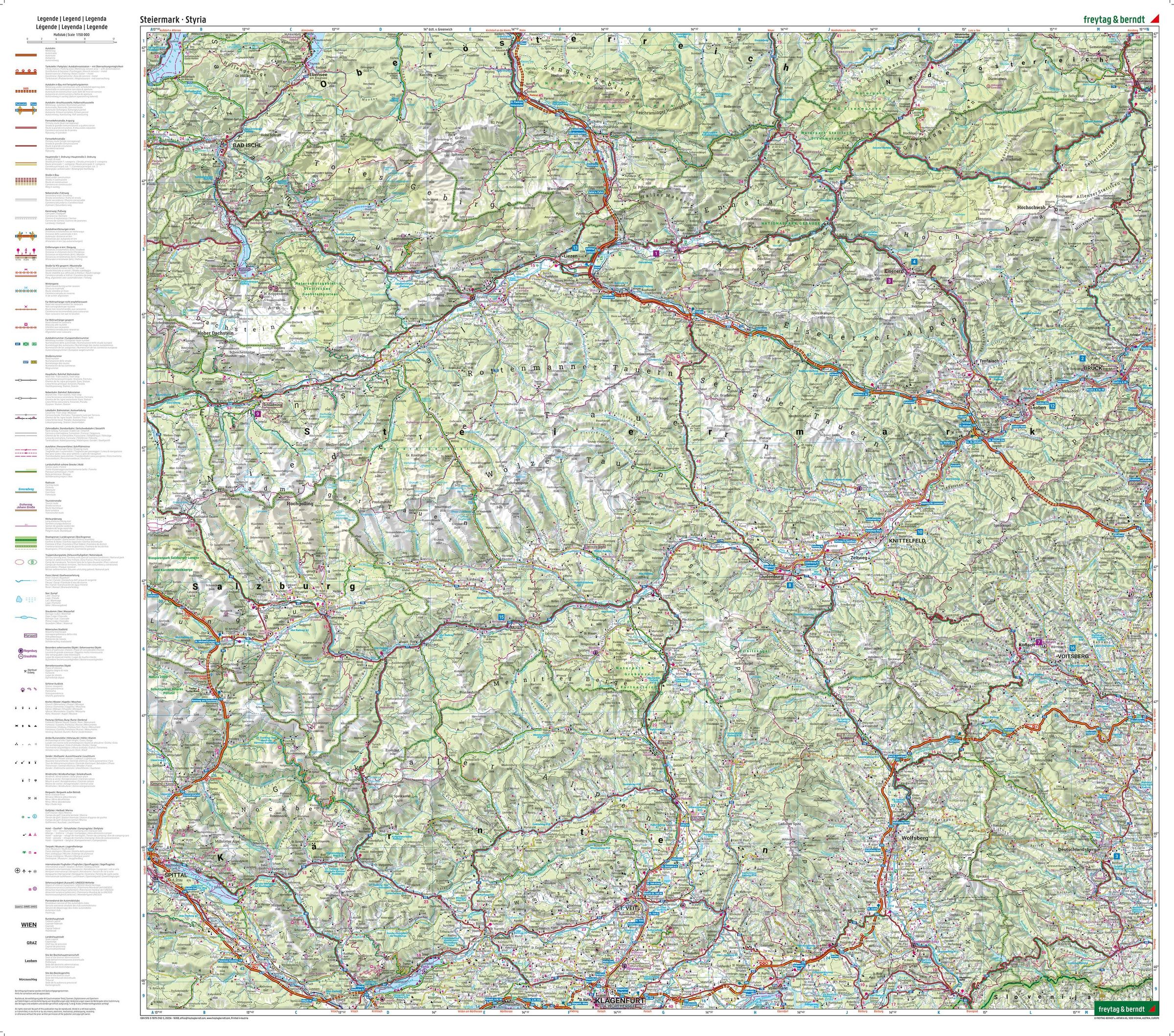 Steiermark, Straßen- und Freizeitkarte 1:150.000, freytag & berndt
