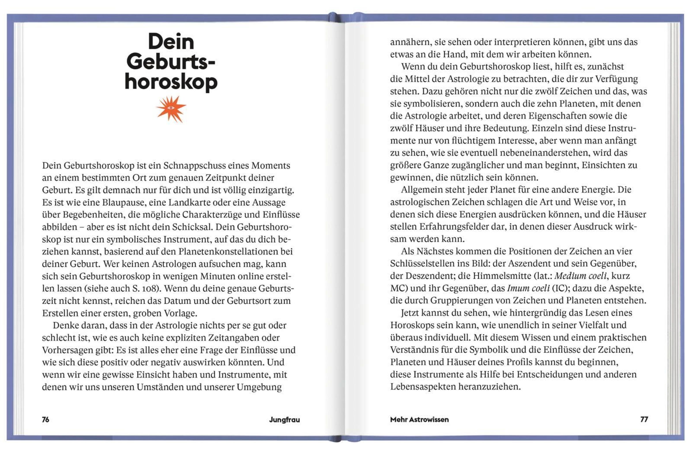 Das hochwertig mit Goldfolie veredelte Sternzeichen-Buch ist ein tolles Geschenk zum Geburtstag oder einfach so für zwischendurch: Neben Glücksstein oder Glückstag der Jungfrau (24. August bis 23. September) verrät das Sternzeichen-Buch auch ganz allgemein, wie das Geburtshoroskop gelesen wird, welchen Einfluss der Mond hat, oder was der >>rückläufige Merkur<< bedeutet. Dazu gibt es für die Jungfrau zahlreiche Alltagstipps aus der Astrologie, zum Beispiel zu Selbstfürsorge, Ernährung oder dem Umgang mit Geld.