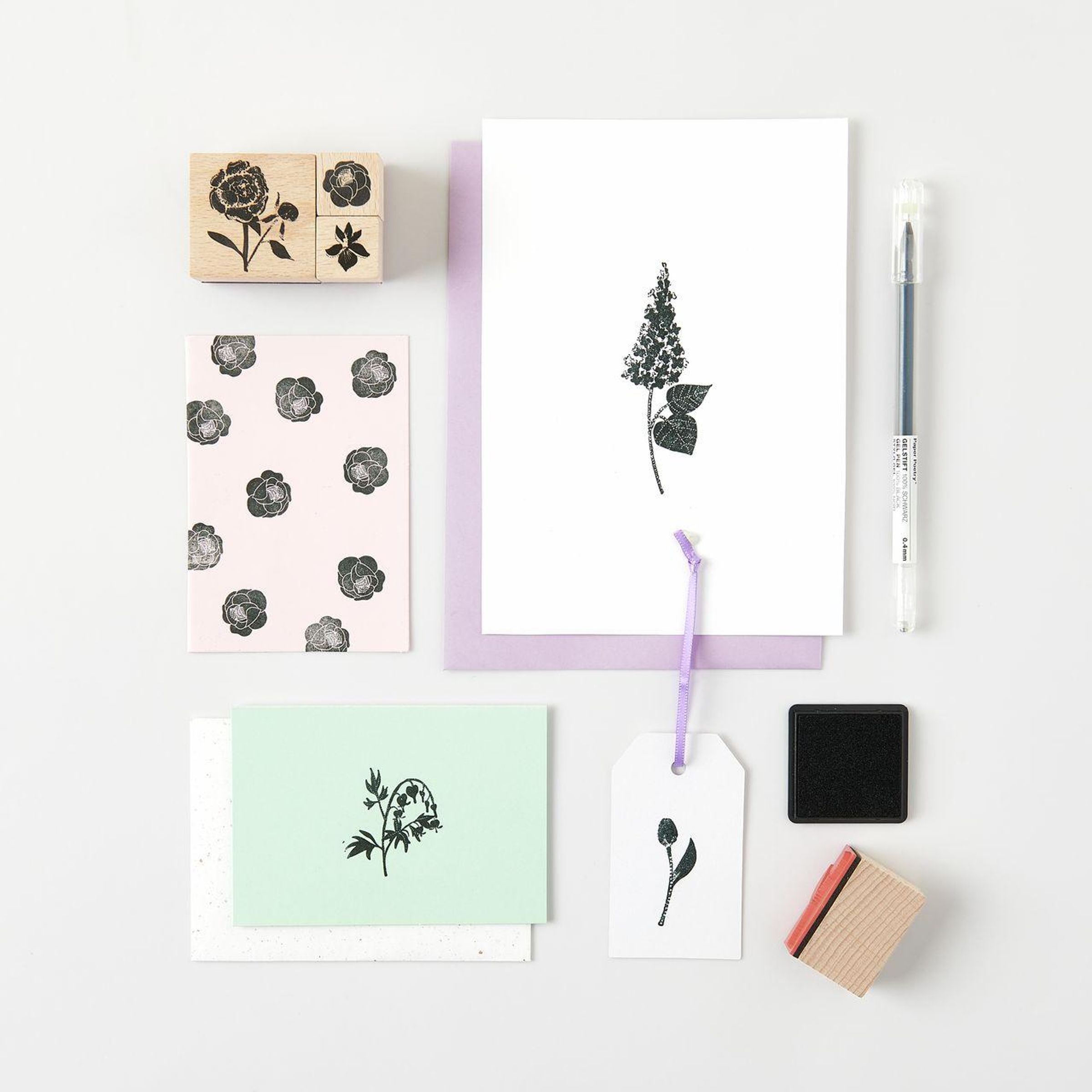 - Inhalt: 8 Stempel, inkl. schwarzem Stempelkissen