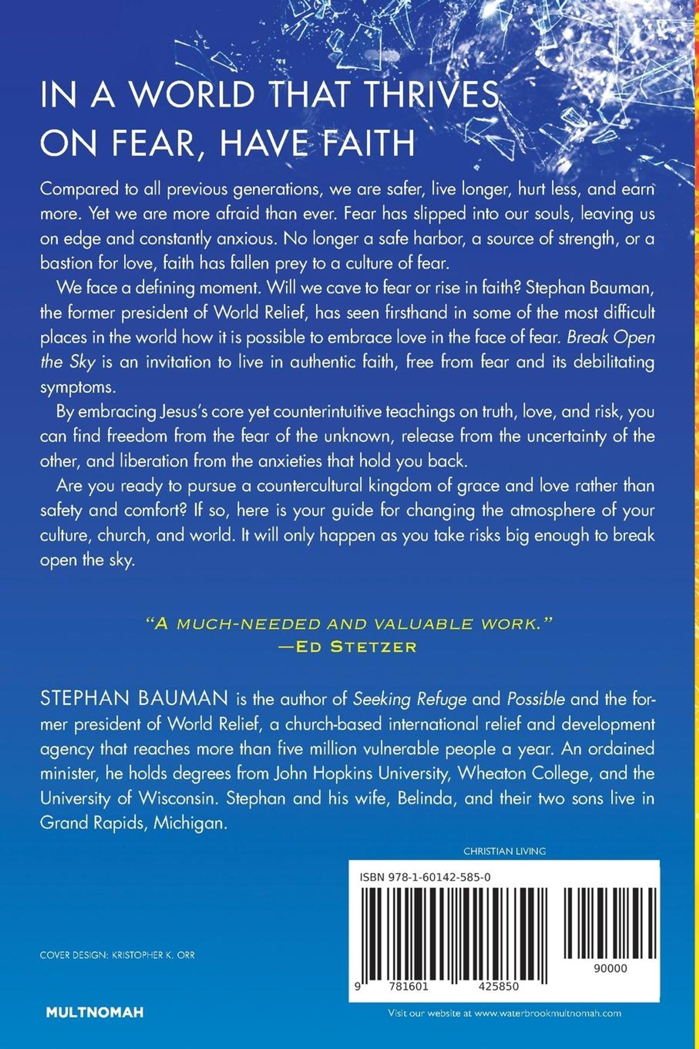 We face a defining moment. Will we cave to fear or rise in faith? Stephan Bauman, the former president of World Relief, has seen firsthand in some of the most difficult places in the world how it is possible to embrace love in the face of fear. Break Open the Sky is an invitation to live in authentic faith, free from fear and its debilitating symptoms.