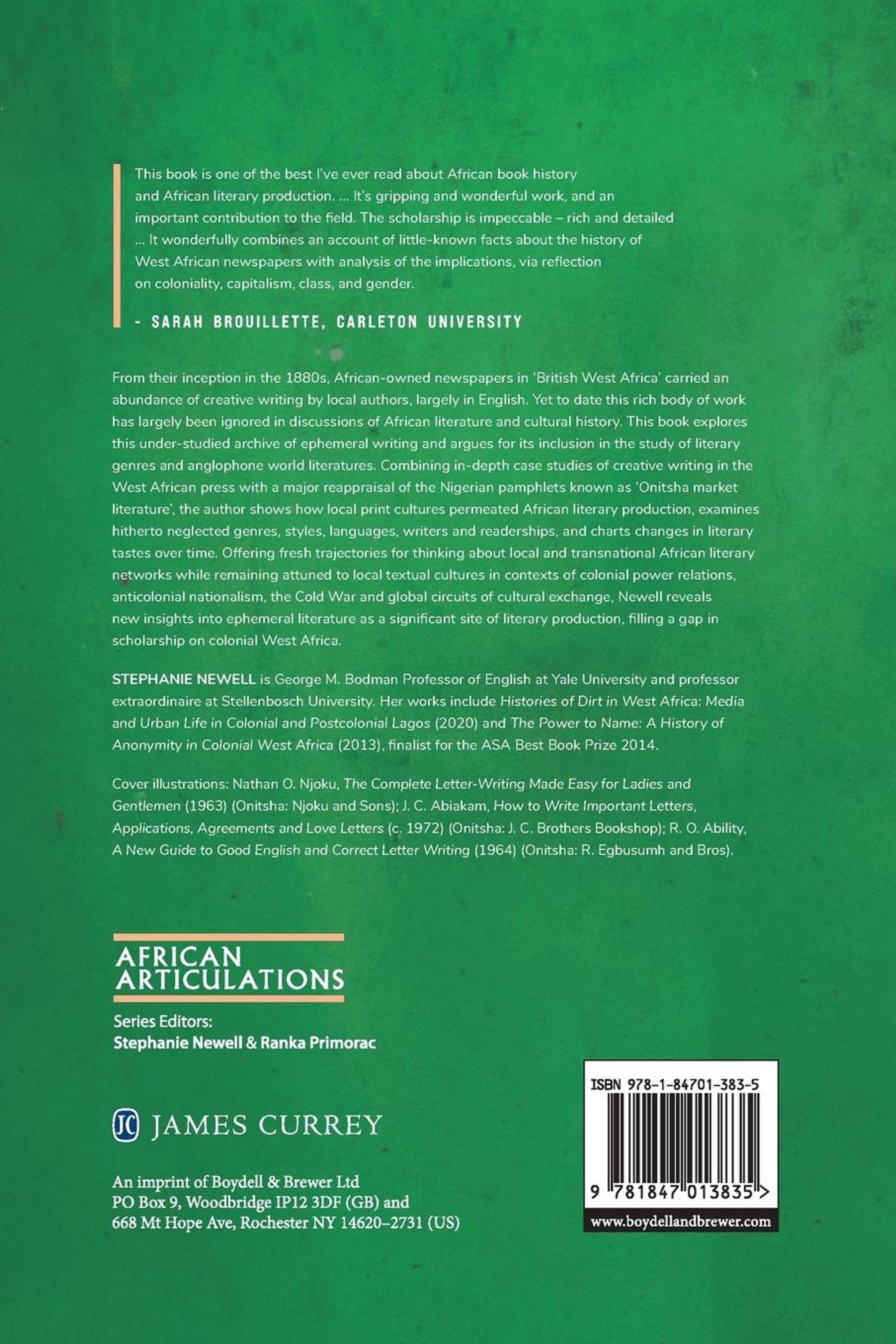 From their inception in the 1880s, African-owned newspapers in 'British West Africa' carried an abundance of creative writing by local authors, largely in English. Yet to date this rich and vast array of work has largely been ignored in critical discussion of African literature and cultural history. This book, for the first time, explores this under-studied archive of ephemeral writing - from serialised fiction to poetry and short stories, philosophical essays, articles on local history, travelogues and reviews, and letters - and argues for its inclusion in literary genres and anglophone world literatures. Combining in-depth case studies of creative writing in the Ghana and Nigeria press with a major reappraisal of the Nigerian pamphlets known as 'Onitsha market literature', and focusing on non-elite authors, the author examines hitherto neglected genres, styles, languages, and, crucially, readerships. She shows how local print cultures permeated African literary production, charting changes in literary tastes and transformations to genres and styles, as they absorbed elements of globally circulating English texts into formats for local consumption. Offering fresh trajectories for thinking about local and transnational African literary networks while remaining attuned to local textual cultures in contexts of colonial power relations, anticolonial nationalism, the Cold War and global circuits of cultural exchange, this important book reveals new insights into ephemeral literature as significant sites of literary production, and contributes to filling a gap in scholarship on colonial West Africa.