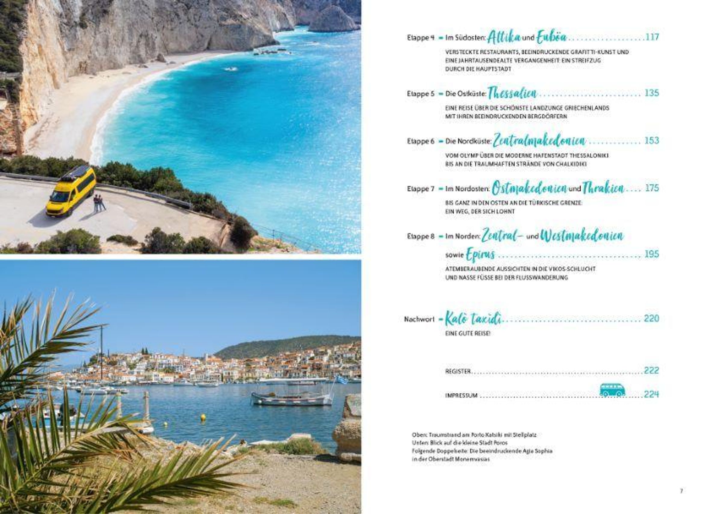 Kommen Sie mit auf eine Erkundungstour des griechischen Festlands - per Camper, Camping Bus, Wohnmobil , o.ä. versteht sich! Folgen Sie den einfach nachfahrbaren Routen durch zehn griechische Regionen : über Küsten- und Panoramastraßen, an Ägäis und Ionisches Meer, vorbei an traditionellen Restaurants voller griechischer Köstlichkeiten zu Sehenswürdigkeiten aus der Antike, in verwinkelte Bergdörfer , zu schwebenden Klöstern und an bezaubernde Orte mitten in der Natur. Tolle Übernachtungstipps inklusive .