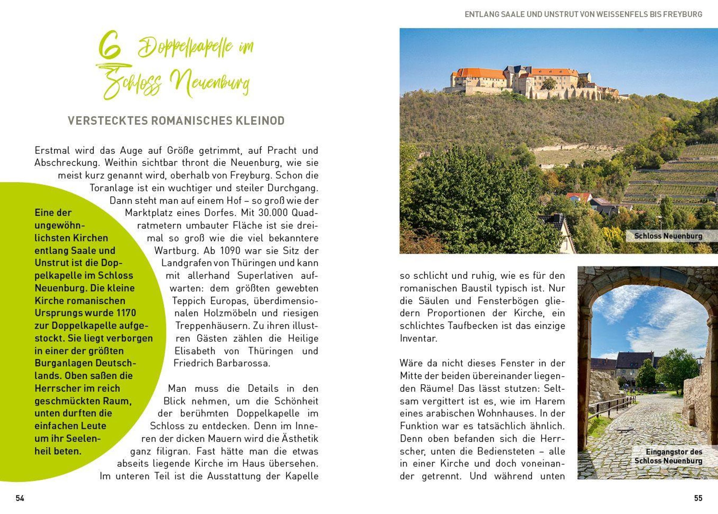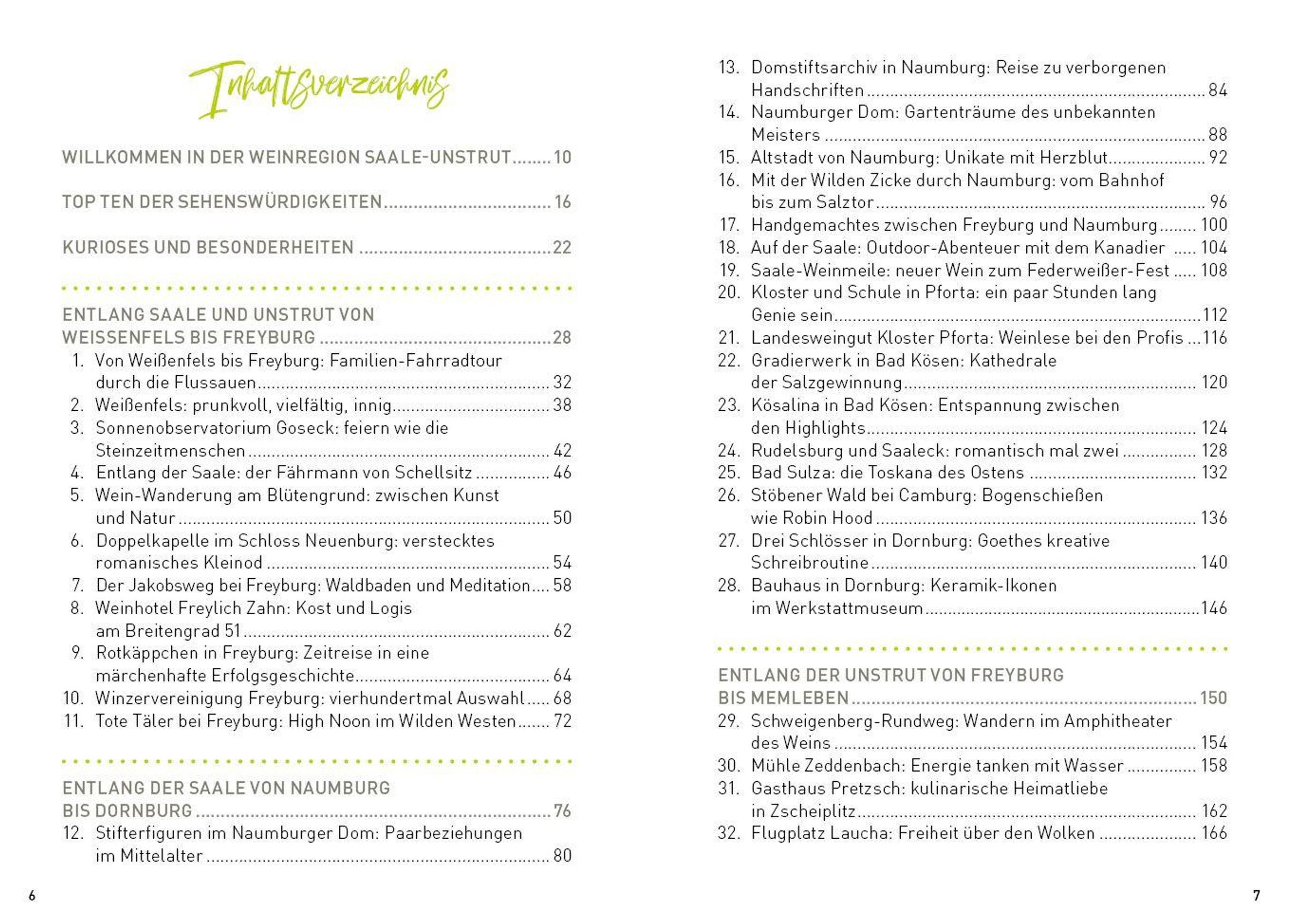 In 50 Mikroabenteuern erkunden die beiden Autorinnen Weinberge und Naturparks aus ganz persönlicher Sicht und mit besonderem Fokus auf Outdoor und Aktivsein. Entdecken Sie Wasserwanderrouten und Waldwanderungen, die besten Fotospots entlang der Steilufer und treffen Sie die engagierten jungen Winzer des Anbaugebiets. Lassen Sie sich auf weniger bekannten Pfaden durch die großen Kulturdenkmäler wie den Naumburger Dom, UNESCO-Weltkulturerbe seit 2018, führen, entspannen Sie sich in den Kurorten Bad Dürrenberg, Bad Sulza oder auch Bad Lauchstädt. Auch wenn Sie die Region schon kennen: Sie werden überrascht sein, wie viel Abenteuer es direkt vor der Haustür gibt!