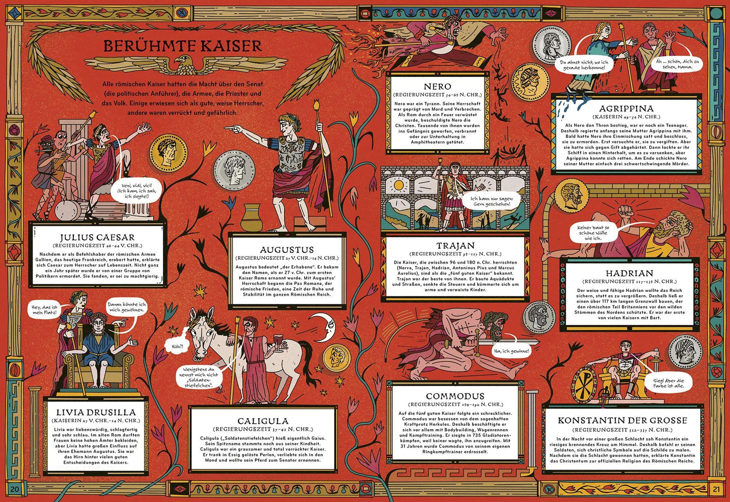 Witzig, bunt und voller Wissen: In diesem rasanten Comic-Band nimmt uns Stephen Davies wieder einmal mit in die Welt der Mythen, Sagen und Legenden. Diesmal dreht sich alles um die römische Antike. In humorvoll gezeichneten Comic-Panels erfahren Kinder nicht nur die abenteuerlichen Geschichten, die man sich über Jupiter, Merkur und Co. erzählte, sondern auch, wie Rom der Legende nach gegründet wurde, wer über das Römische Reich herrschte und wie man dort eigentlich lebte. Von Aeneas über Romulus und Remus bis hin zu Julius Caesar trifft man auf die spannendsten Figuren der römischen Antike. Die perfekte Einführung in die Sagenwelt des Alten Roms für Comic-Fans ab 8 Jahren!