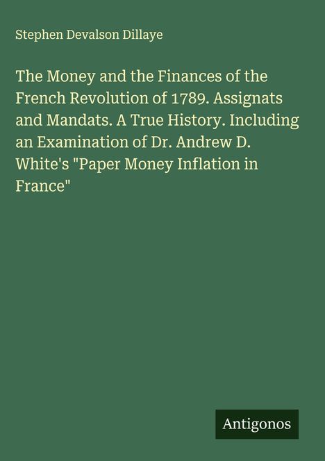 The Money and the Finances of the French Revolution of 1789. Assignats and Mandats. A True History. Including an Examination of Dr. Andrew D. White's "Paper Money Inflation in France"
