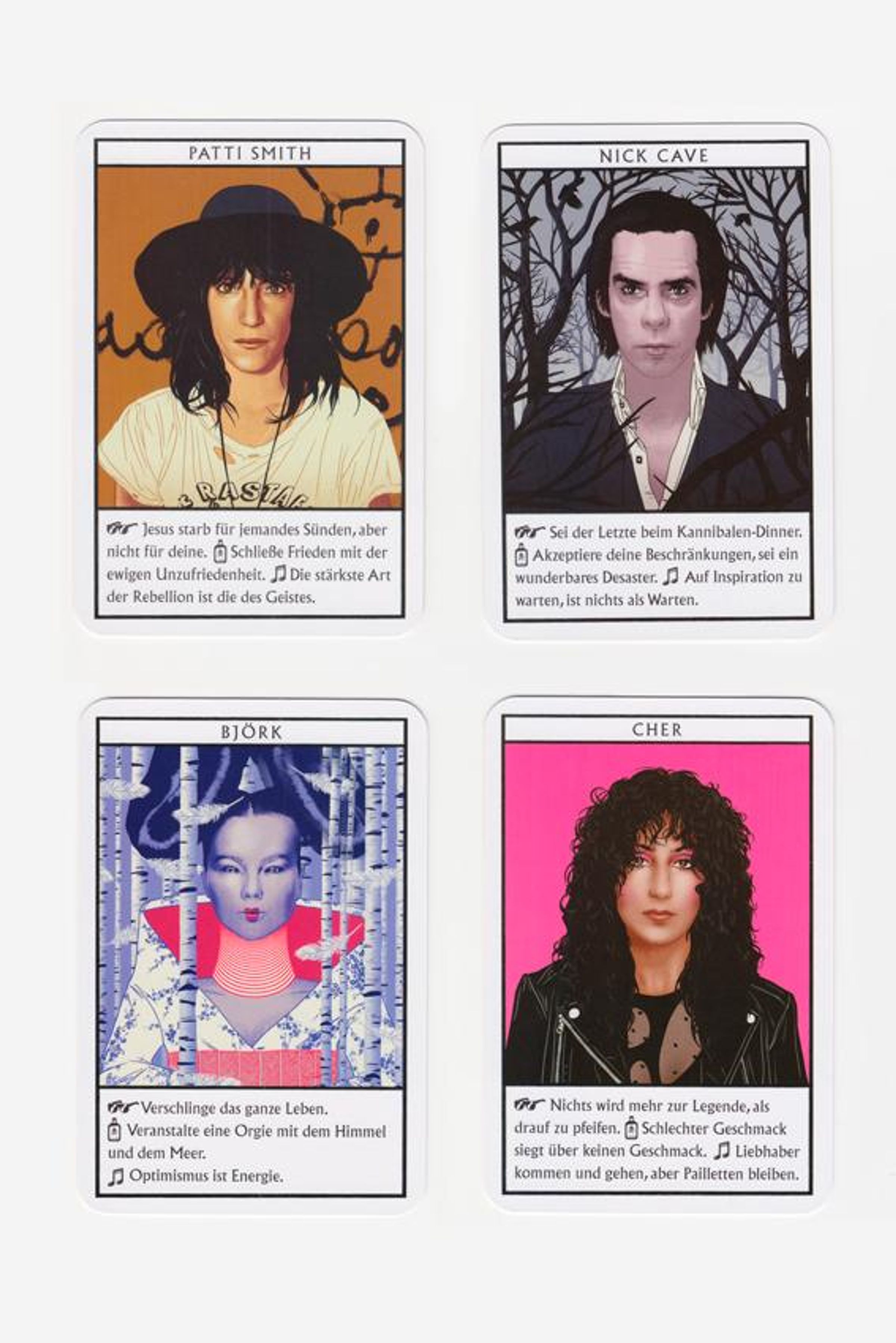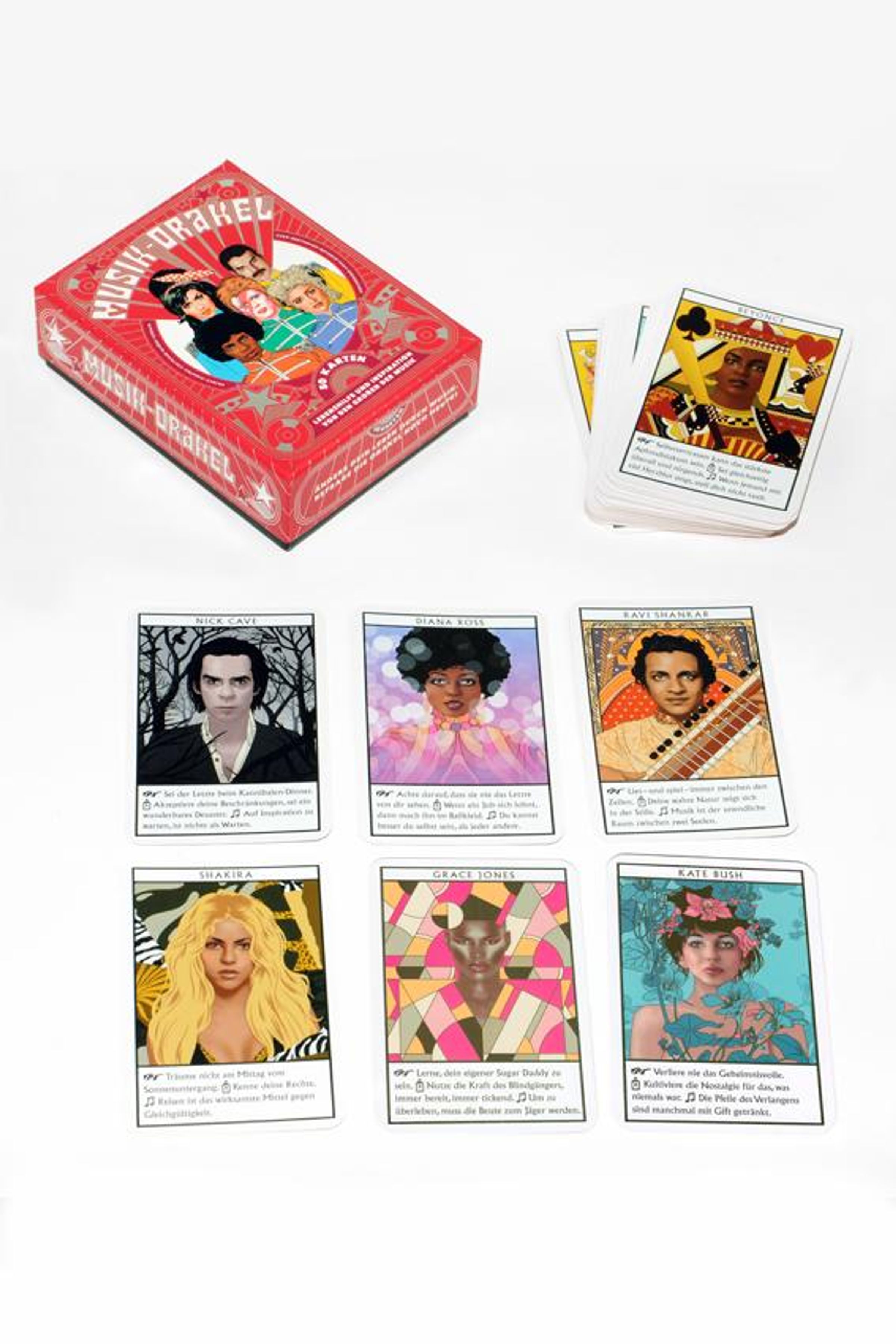 Orakel-Karten mit tollen Musiker-Portraits und (nicht ganz wahren) 'Zitaten' Inspiration und augenzwinkernde Lebenshilfe aus dem Olymp der Musikgeschichte Booklet mit Kurzbiografien der Musiker Sie fragen sich, was Sie mit Ihrem Leben anfangen sollen? Lassen Sie sich von David Bowie inspirieren. Sie verspüren Sehnsucht nach Liebe? Bitten Sie Marvin Gaye um Hilfe. Sie möchten ein Statement setzen? Grace Jones hat die Antwort. Wählen Sie einfach eine Karte, befolgen Sie die vom Leben und Schaffen der Musiker inspirierten Lebensweisheiten und Ratschläge zu Lebenseinstellung, Lifestyle und Inspiration - und jedes persönliche Hindernis wird überwindbar!