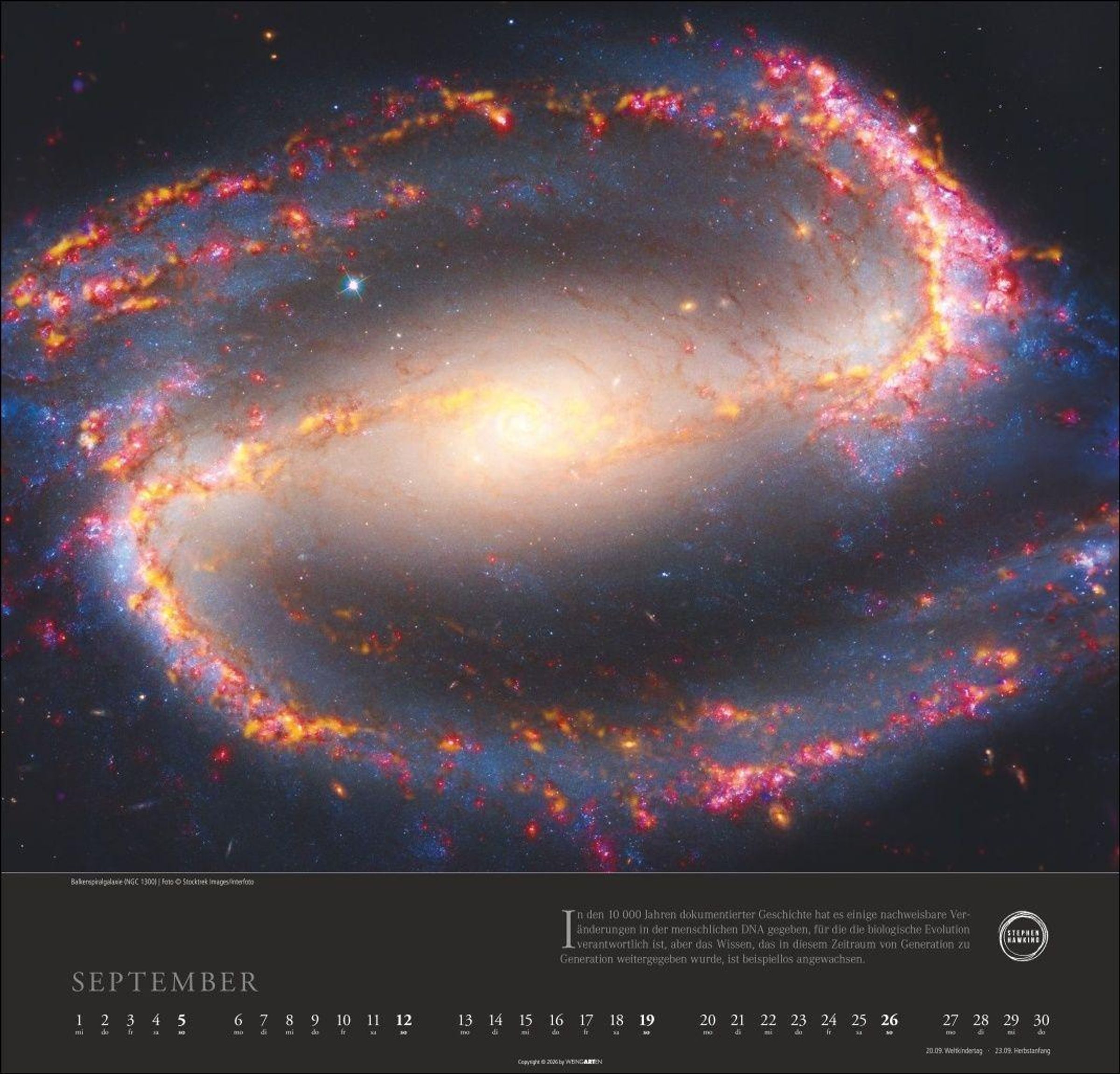 Macht jede Couch zum Space Shuttle: Wandkalender 2027 mit spektakulären Fotos unseres Kosmos und passenden Zitaten des berühmten Wissenschaftlers