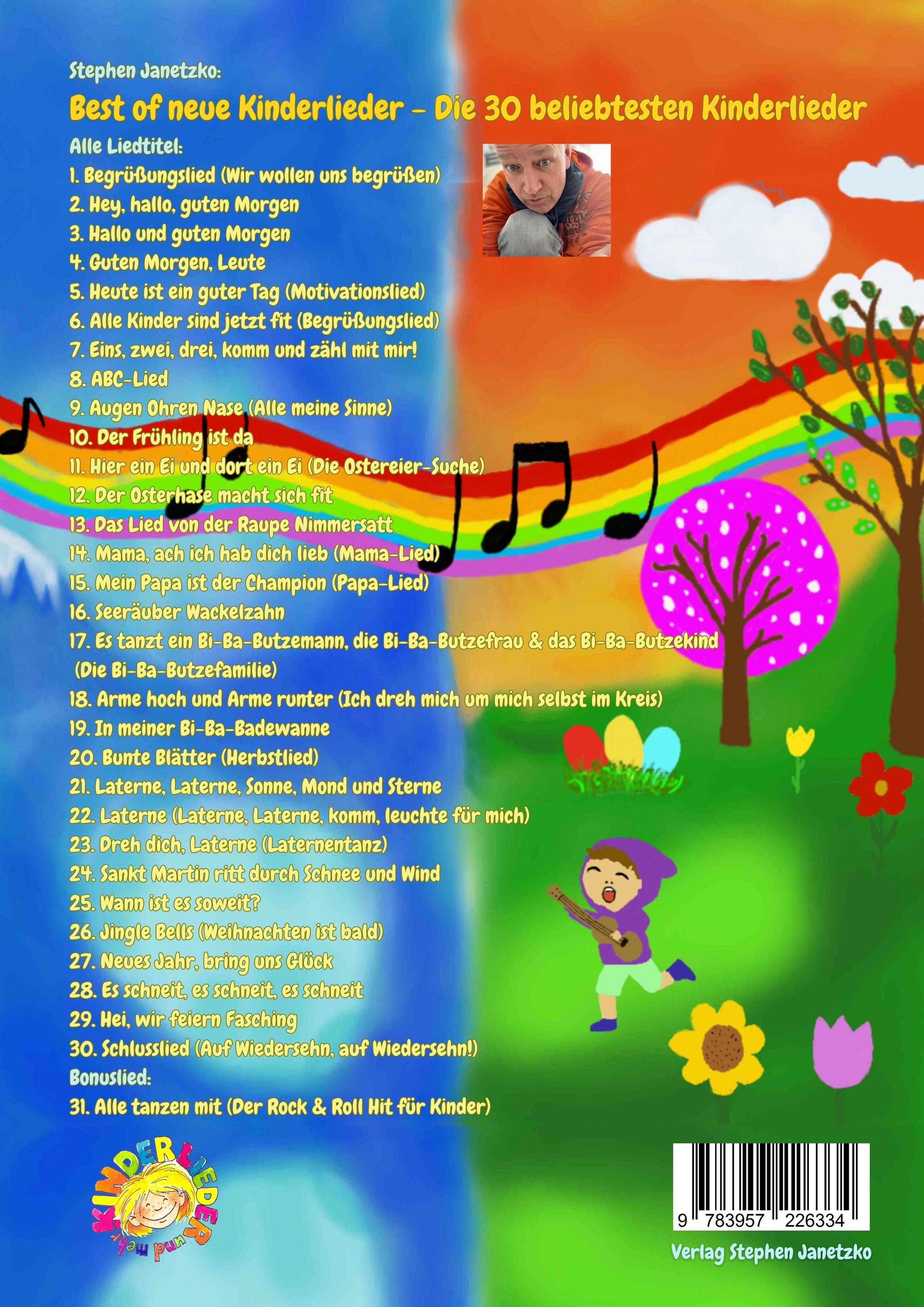 Stephen Janetzko: Best of neue Kinderlieder - Die 30 beliebtesten Kinderlieder. Das Liederbuch. Das neue Kinderliedernotenbuch von Stephen Janetzko enthält seine meistgestreamten Kinderlieder auf Amazon Music, Spotify & Co und bietet so eine perfekte Mischung aus dem umfangreichen Repertoire eines der bekanntesten deutschsprachigen Kinderliedermacher. Das Liederbuch enthält alle Texte, Noten und Gitarrengriffe zum Mitsingen und Mitspielen, begleitend erscheint zum Anhören das gleichnamige Album zum Streamen und Downloaden auf allen gängigen Plattformen. Im Buch ist zusätzlich ein Bonuslied enthalten. Alle Liedtitel: