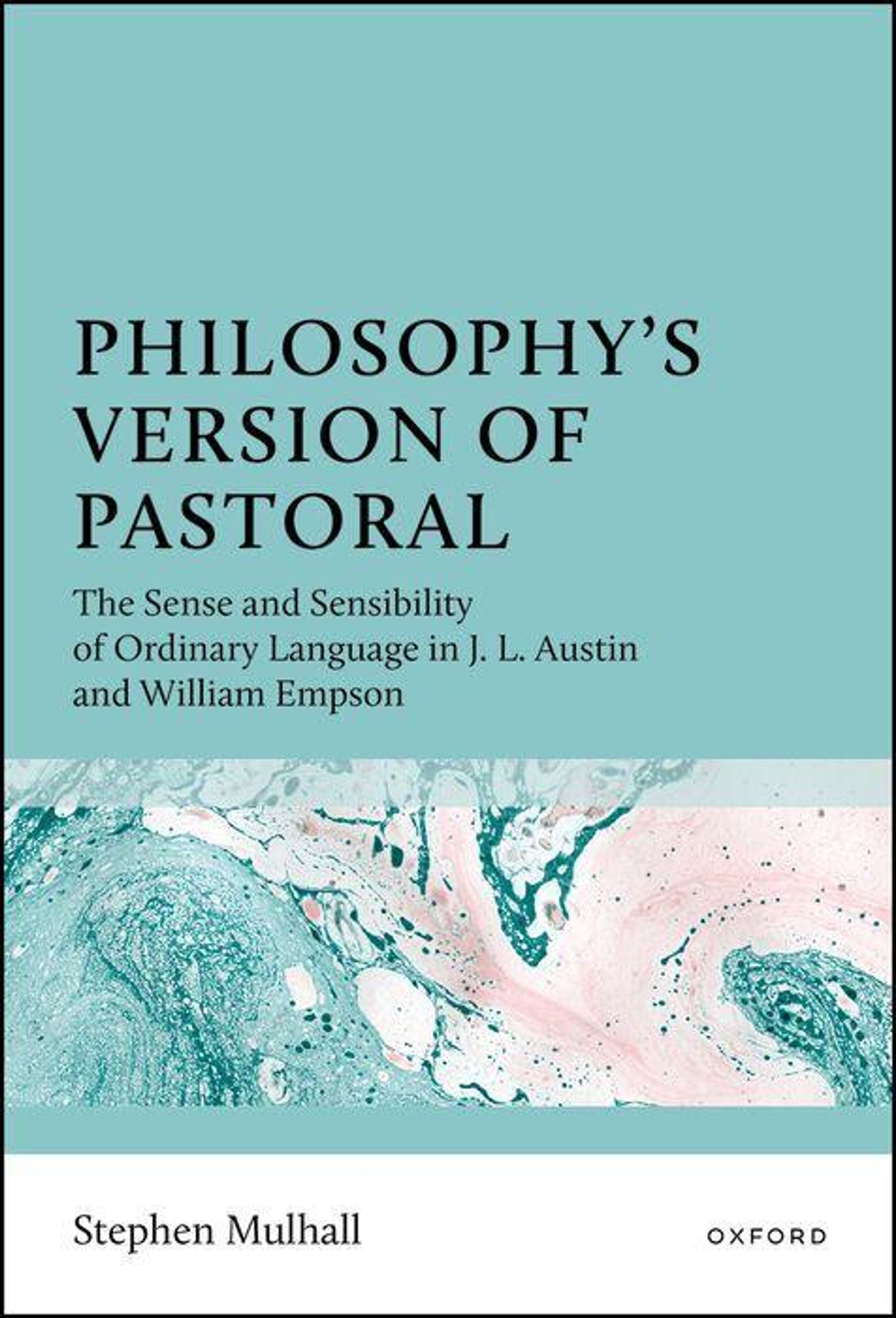 Buchtitel: "Philosophy's Version of Pastoral". Autor: Stephen Mulhall. Cover: Abstrakte grün-weiße Marmorierung., Buch