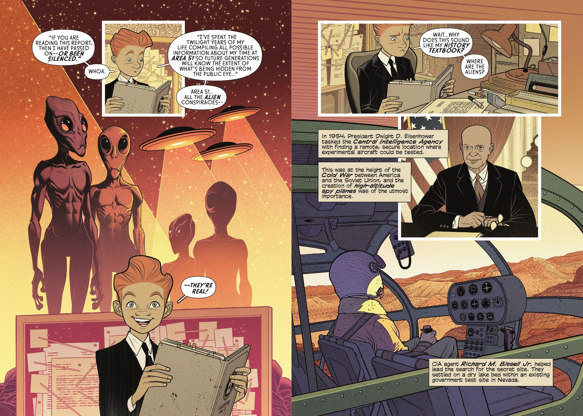 Welcome to the first venture into the Archives of the Unexplained, a middle grade fiction graphic novel series exploring historical and mysterious hair-raising events. In this dive, we take a look into Area 51! Creepy is having a comeback! Open the Archives of the Unexplained as we delve into unearthly real-life stories, explore the unknown, and examine the elusive facts of history's many mysteries. Each book in this series takes one or two high-interest and relatively focused events and presents a lively, thorough, but open-ended examination of what occurred.