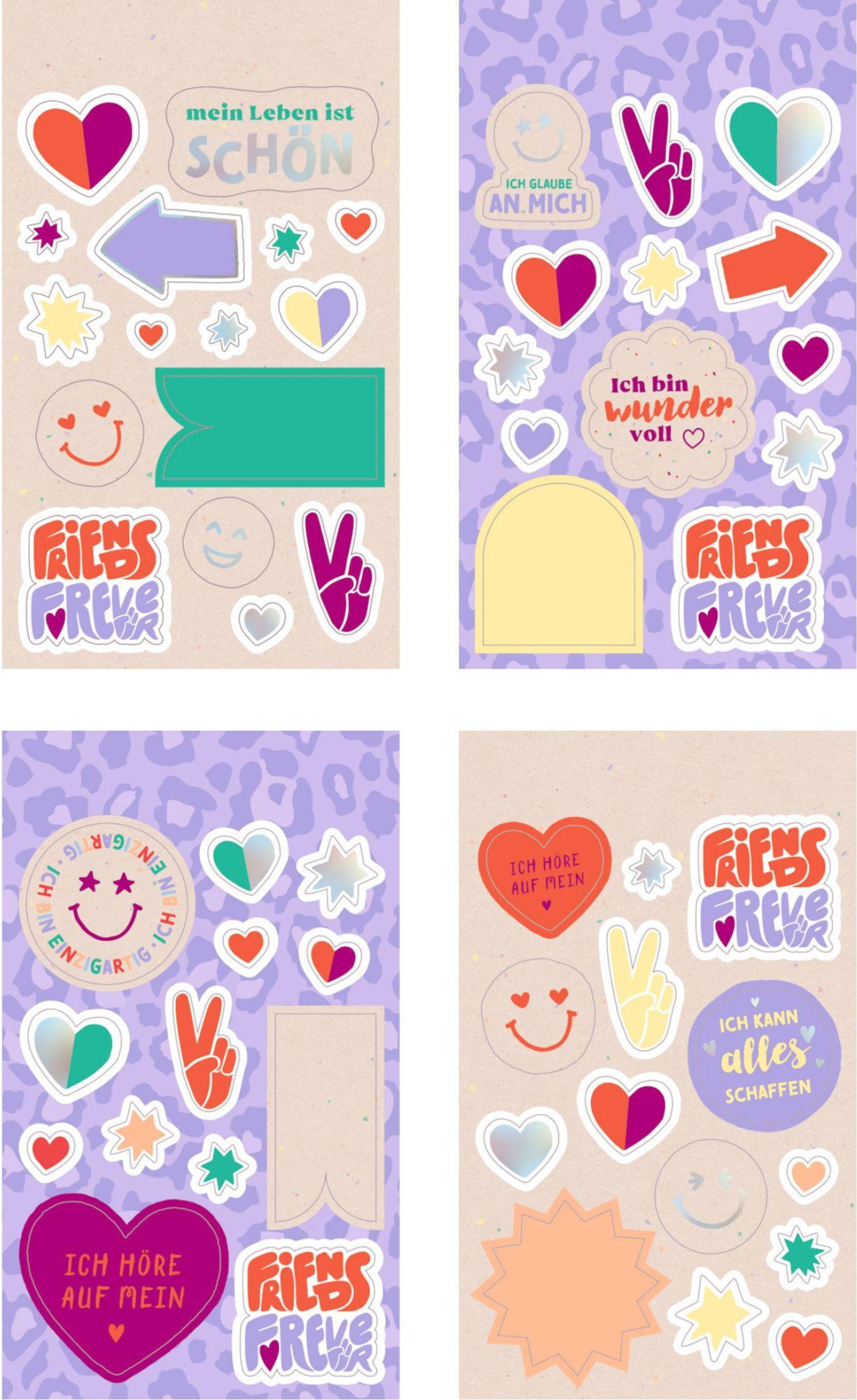 Die fröhlich-bunten Sticker bringen Farbe, gute Laune und kreative Energie in den Alltag. Ob Schulheft, Tagebuch oder kleines Geschenk - jedes Motiv lädt zum Gestalten ein und macht einfach Lust, sofort loszulegen.