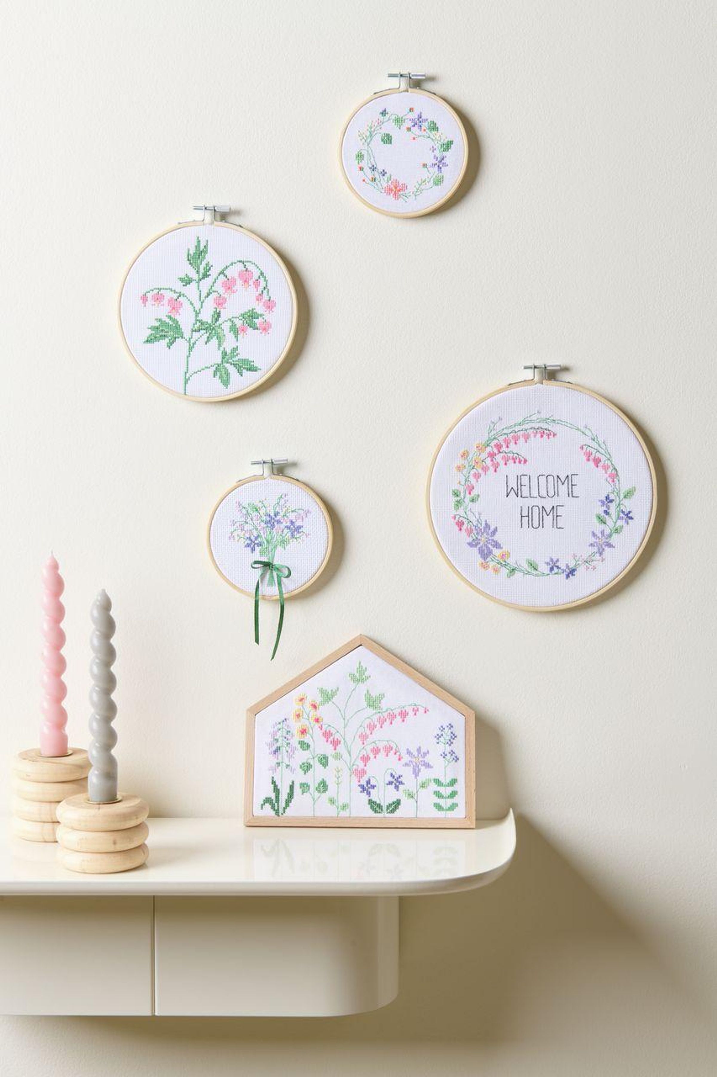 - Inhalt: Dekorahmen, Stoffzuschnitt aus Baumwolle, Sticknadel, Stickgarn und Anleitung