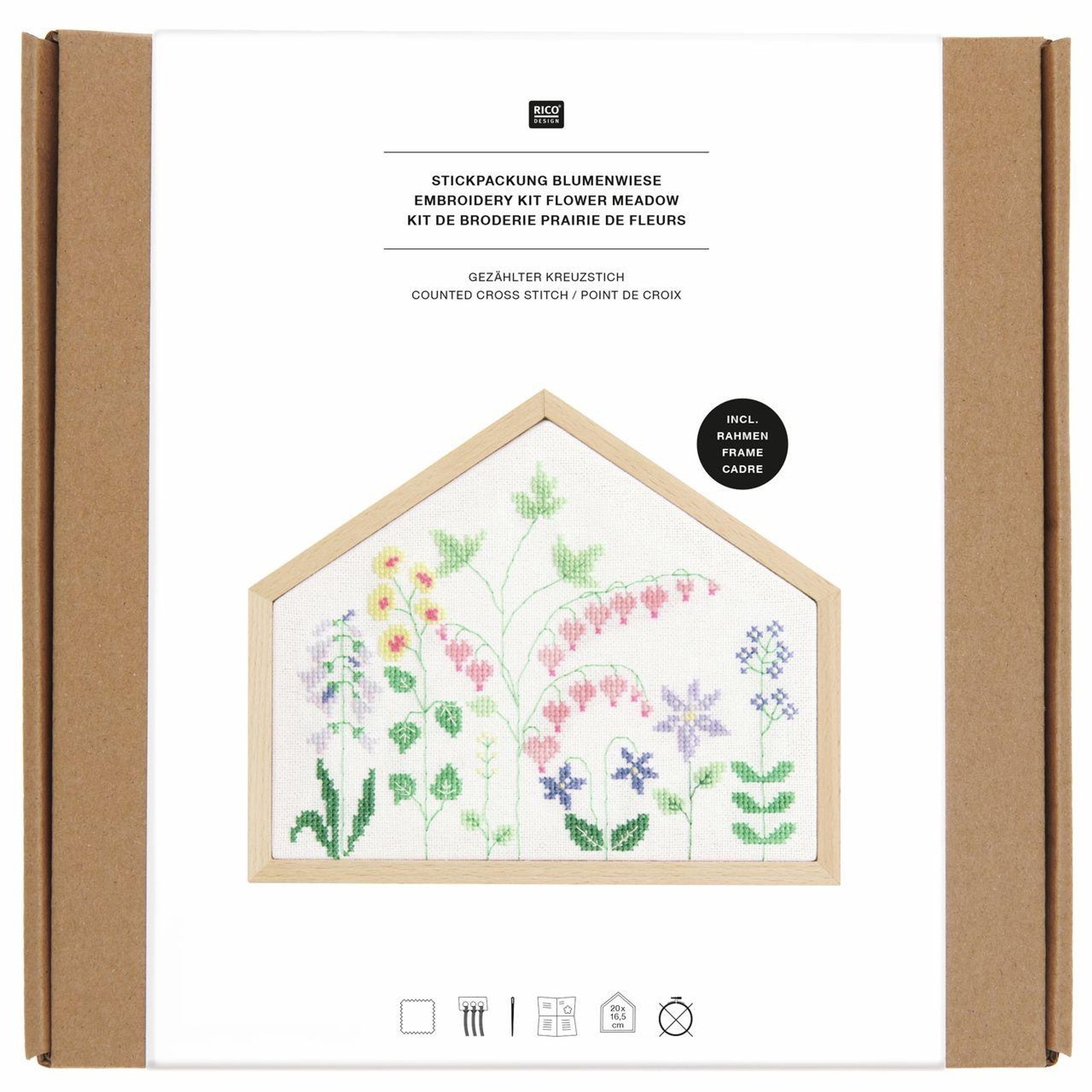 Stickpackung Gezählter Kreuzstich, Blumenwiese, FSC Mix // Haus Quer S, 20 x 16,5 cm