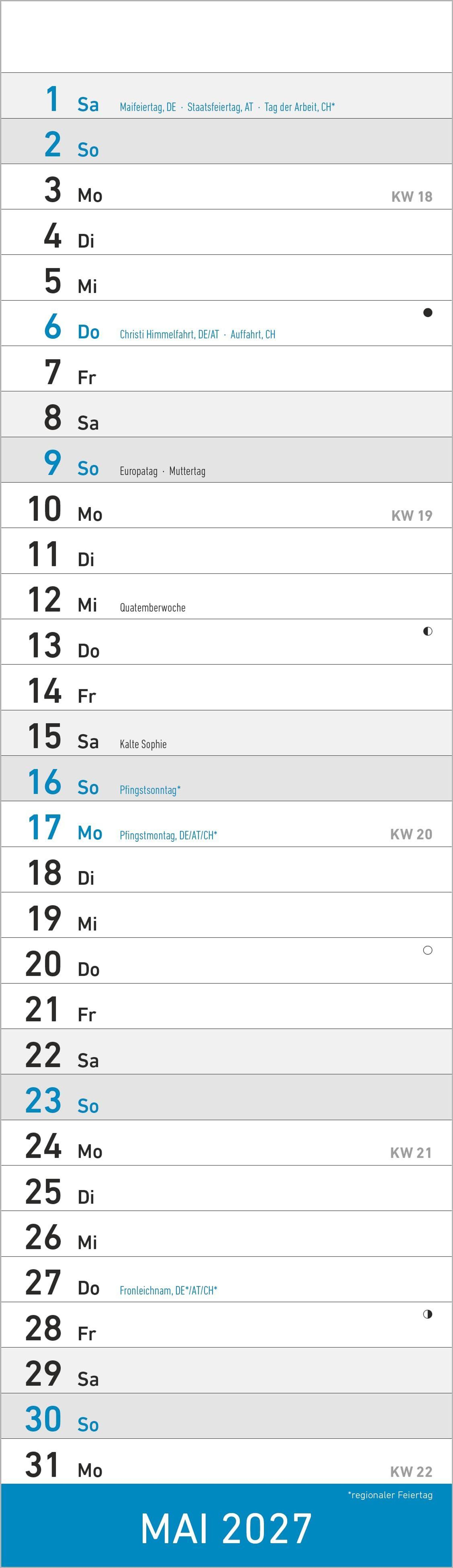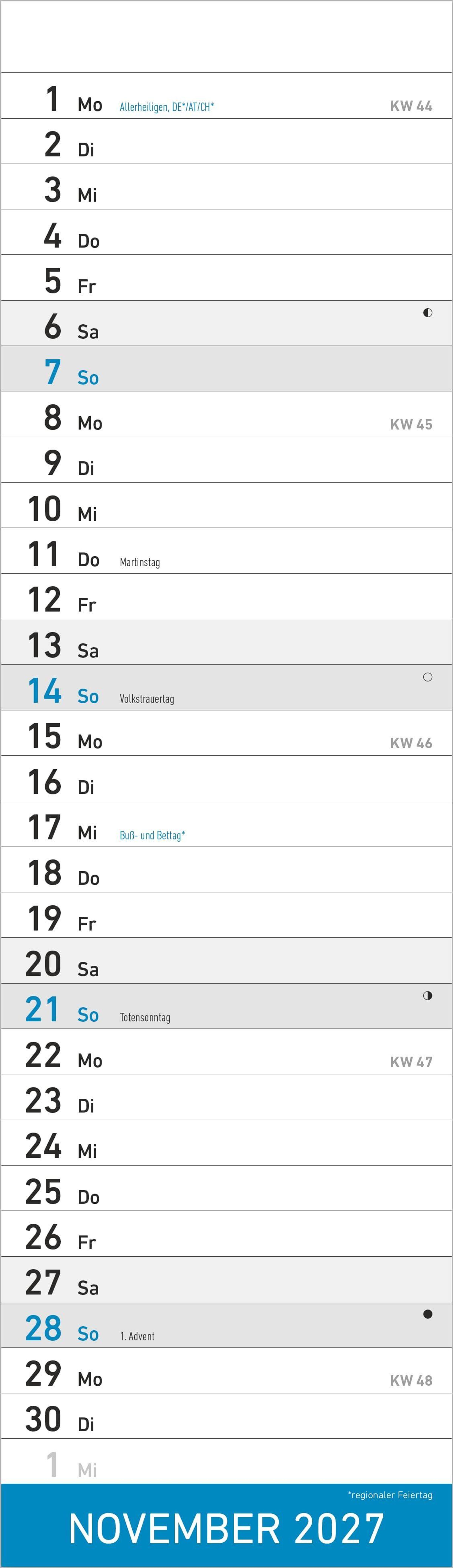 Deutsches Kalendarium mit Feiertagen (DE/AT/CH)