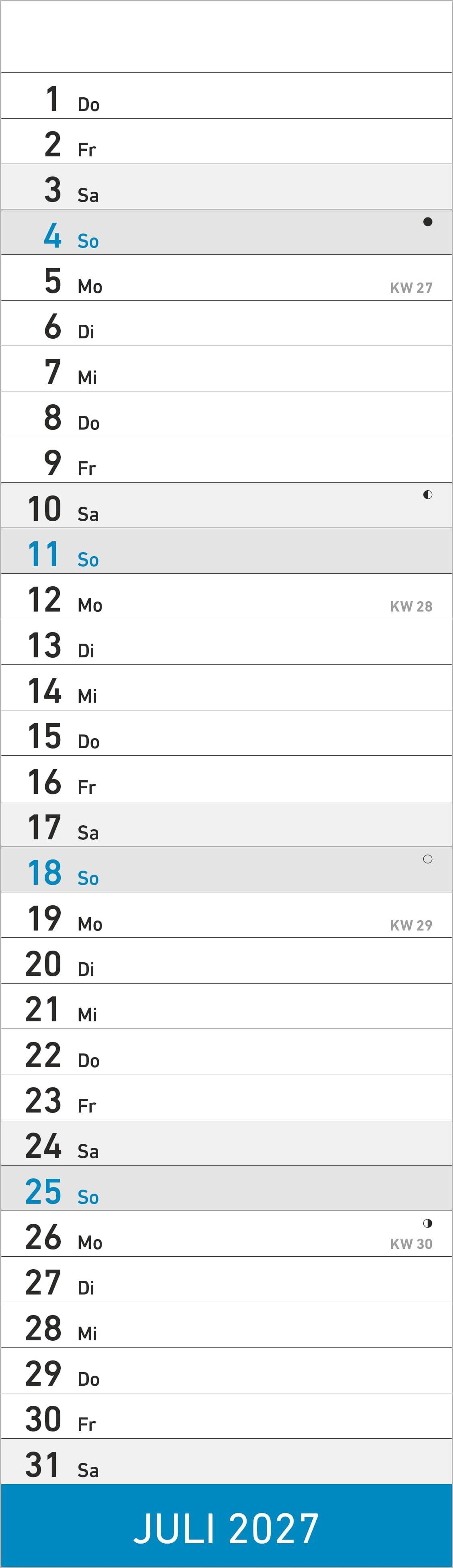 Streifenplaner Mini BLAU 2027 (Kalender)