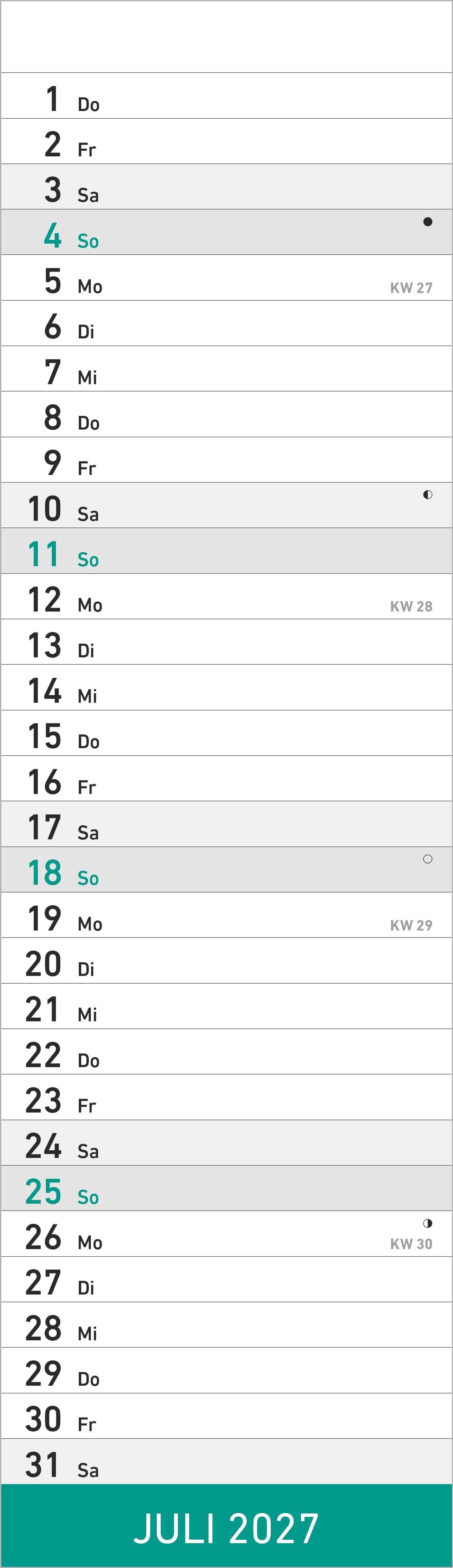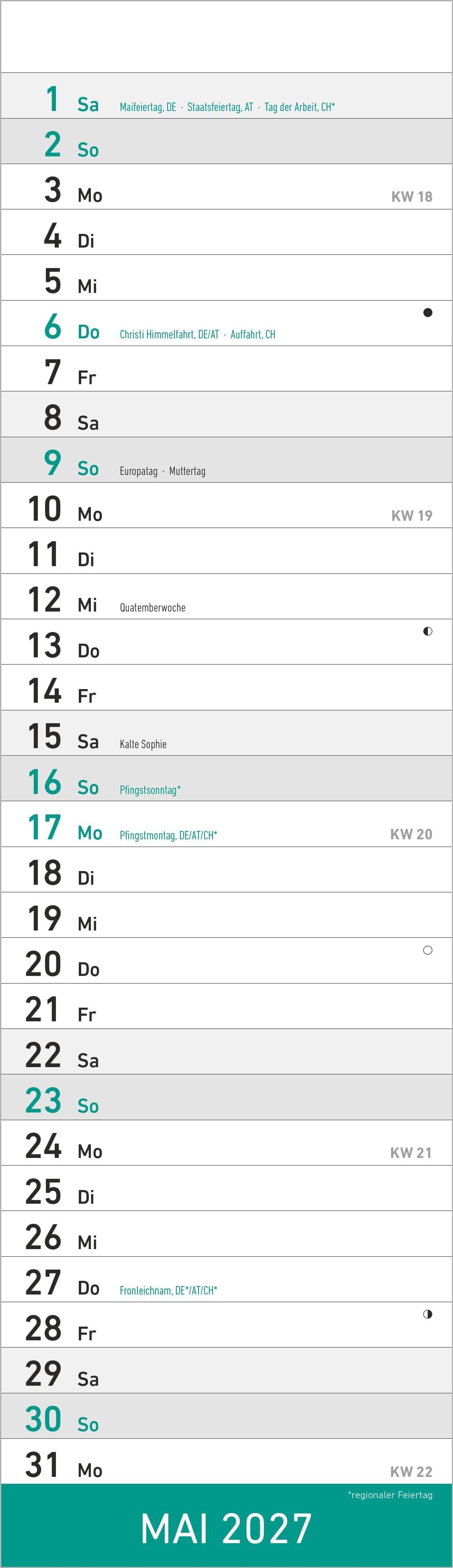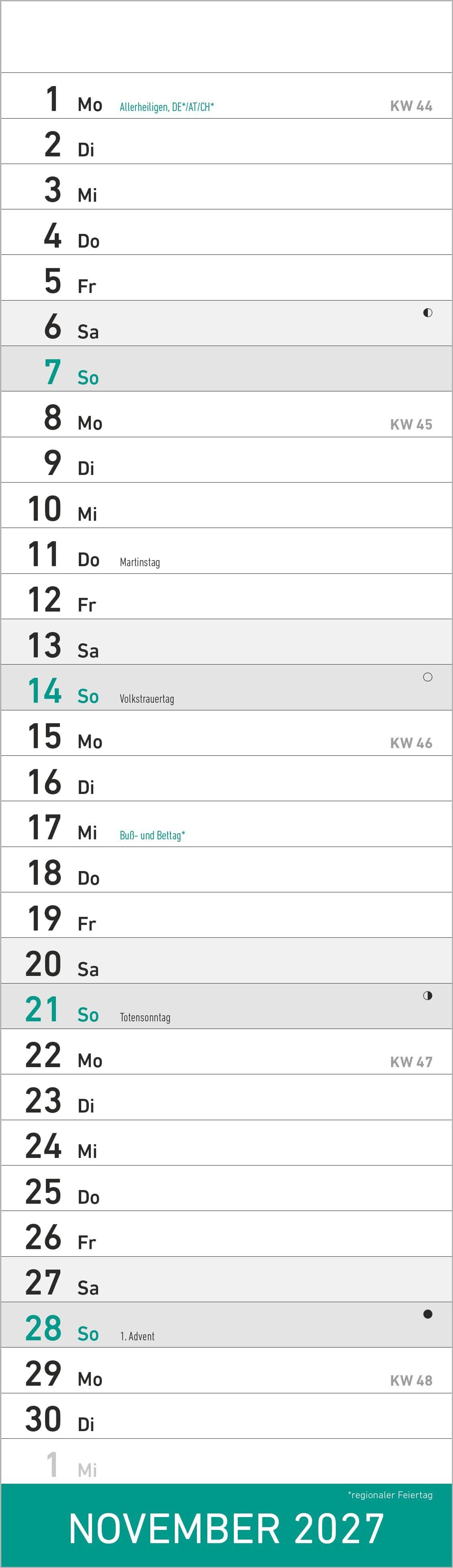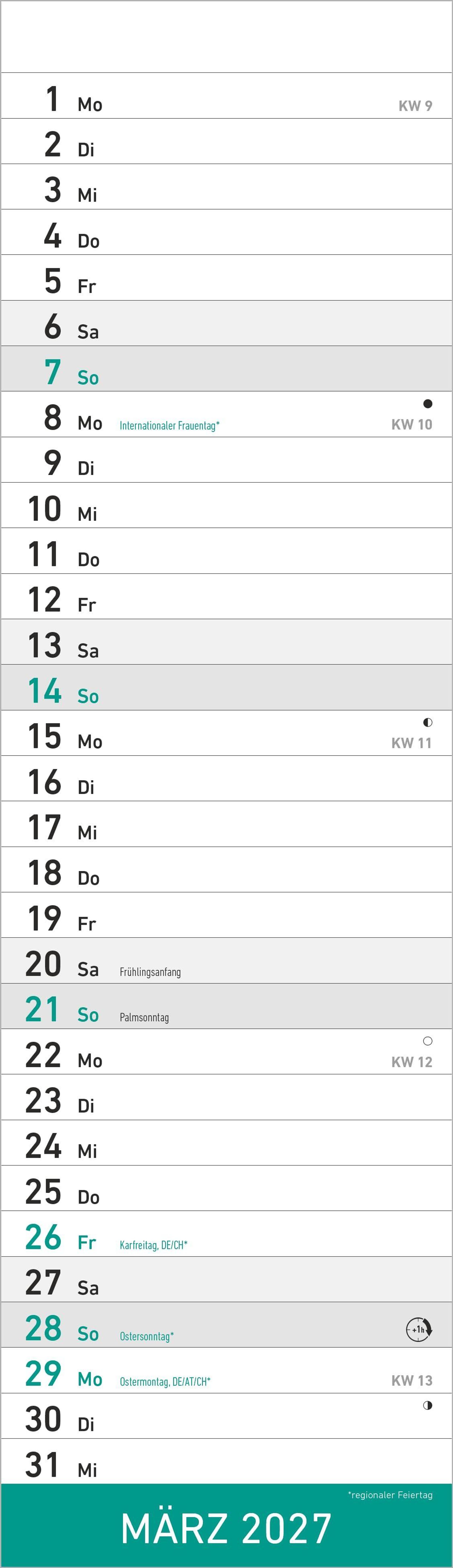 Übersichtliches Kalendarium: Klare Monatsansicht mit genügend Platz für Notizen.