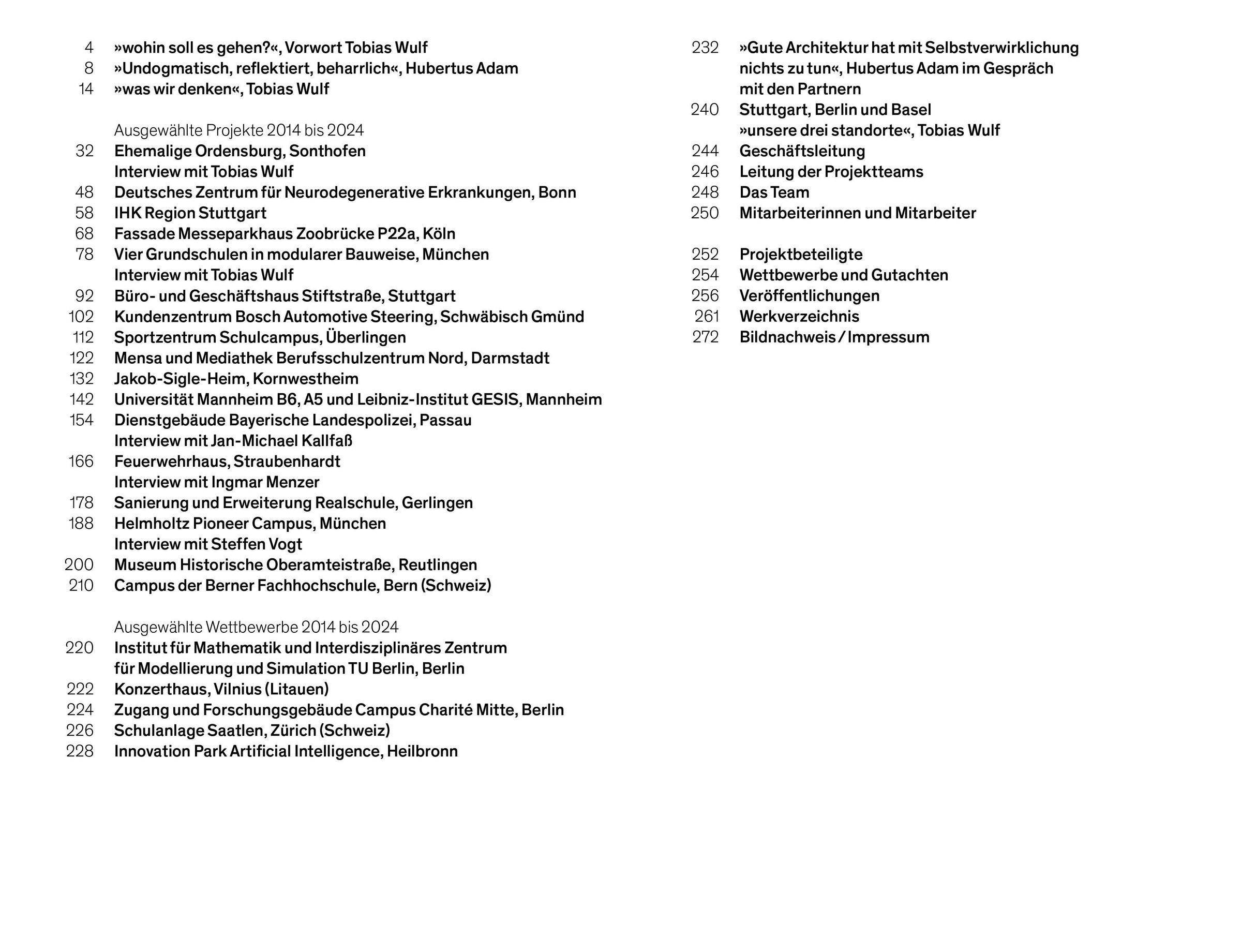 Form, Raum und Konstruktion sind als Dreiklang untrennbar miteinander verbunden. Für das in Stuttgart, Berlin und Basel ansässige Architekturbüro wulf architekten spielt insbesondere der kreative Impuls eine besondere Rolle. Er ermöglicht es, Tragwerke raumprägend zu interpretieren und eine atmosphärische Wirkung der Architektur zu entfalten. Mit dem Begriffspaar Struktur und Typus werden Grundlagen und Ziele dieser Haltung untermauert. Dies zeigt sich an zukunftsweisenden Projekten in den Bereichen Bildung, Forschung, Kultur und Sicherheit. In ihrem neuen Buch stellt das Büro 17 realisierte Bauten vor, die in den Jahren 2014 bis heute fertig gestellt wurden. Dazu diskutiert wulf architekten im Dialog mit dem renommierten Architekturkritiker Hubertus Adam Fragen, die den aktuellen baukulturellen Diskurs bestimmen.