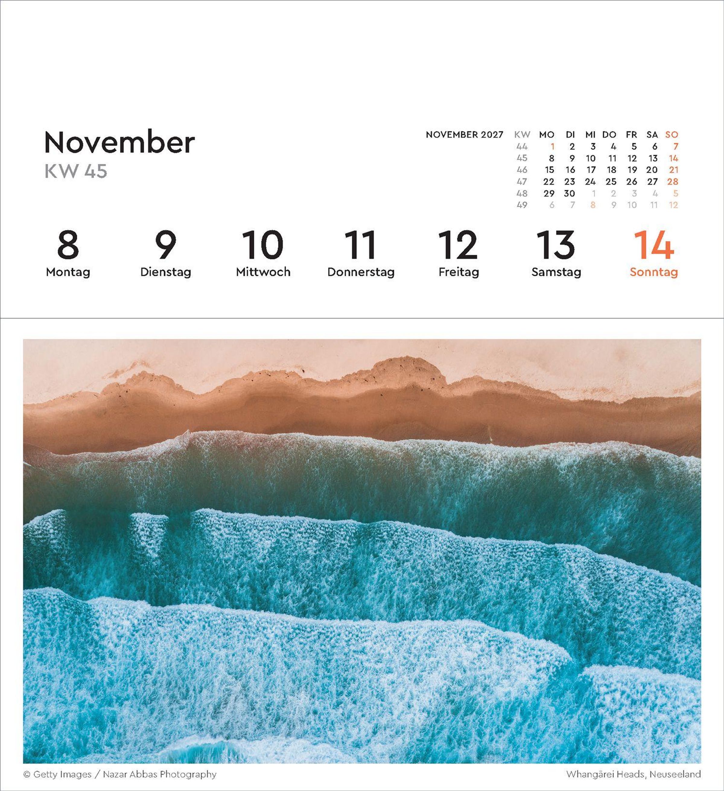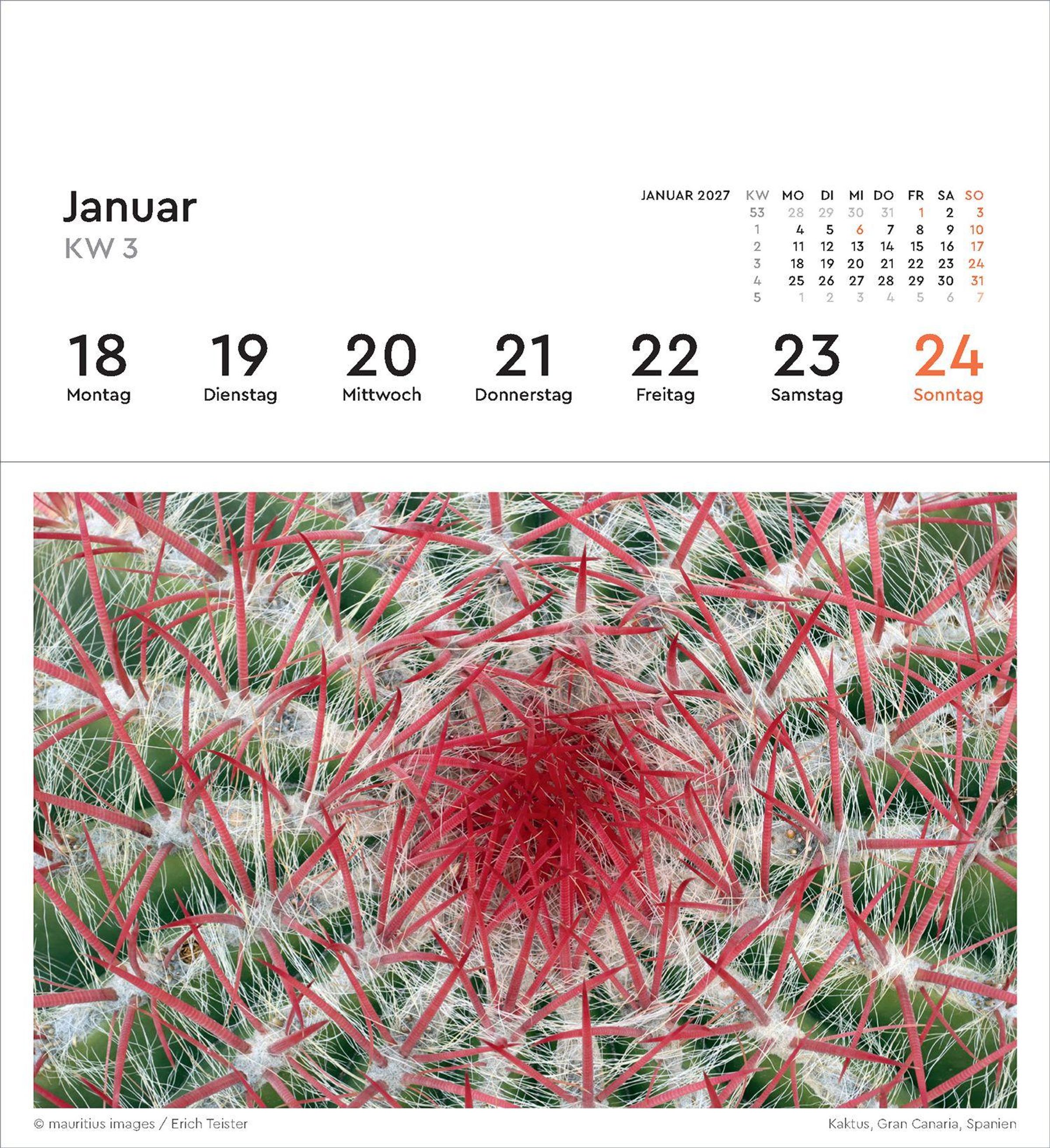 53 fantastische Fotografien in hochwertigem Druck können als Postkarten gesammelt oder verschickt werden. Natürlich enthält der Kalender einen praktischen wöchentlichen Terminplaner.