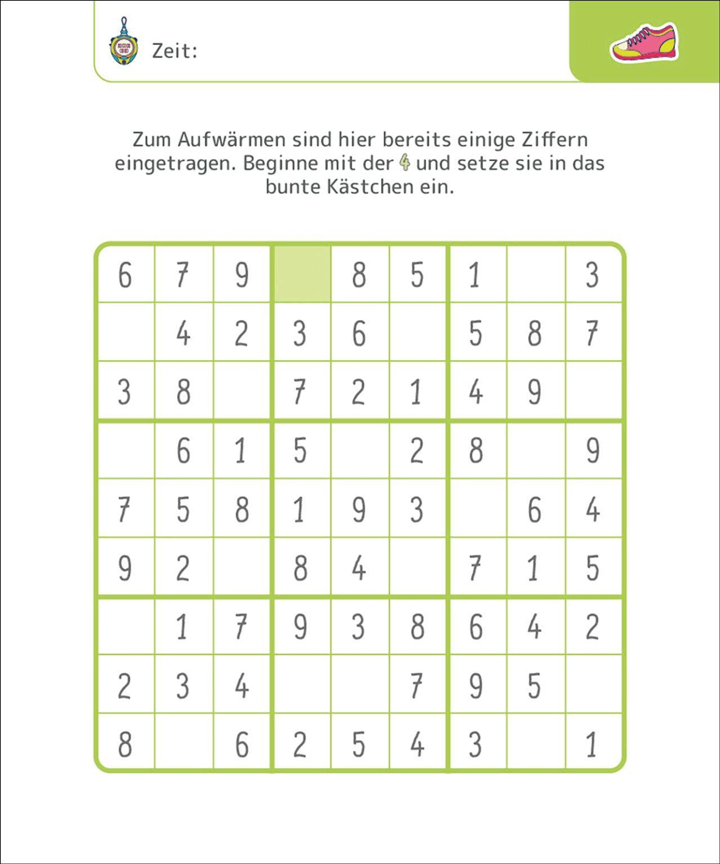Knobel dich durch die Rätsel und werde Zahl für Zahl zum Sudoku-Profi! Dieser Block mit 60 kniffligen Sudokus bietet jede Menge Knobelspaß für Kinder ab 8 Jahren. Der steigende Schwierigkeitsgrad sorgt für die Extraportion Spannung und die hilfreichen Tipps und Tricks unterstützen beim Rätseln. Die Kinder können auf jeder Seite ihre eigene Bestzeit festhalten und sich so immer wieder selbst herausfordern. Die Ergebnisse lassen sich ganz einfach mithilfe der Lösungen auf den Rückseiten überprüfen. Das moderne Design und das handliche Format machen unsere Sudoku-Blöcke zu dem Langeweilekiller für zu Hause und unterwegs!