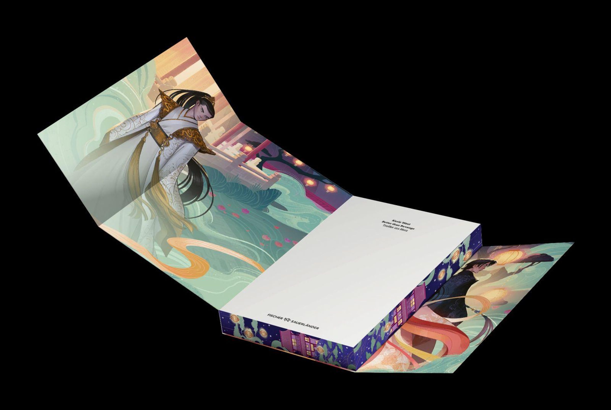 · Mit einem wunderschönenMotivfarbschnitt in der ersten Auflage und edel gestalteten,vierfarbigen Innenklappen sowie einerliebevoll illustrierten Landkarte im Innenteil