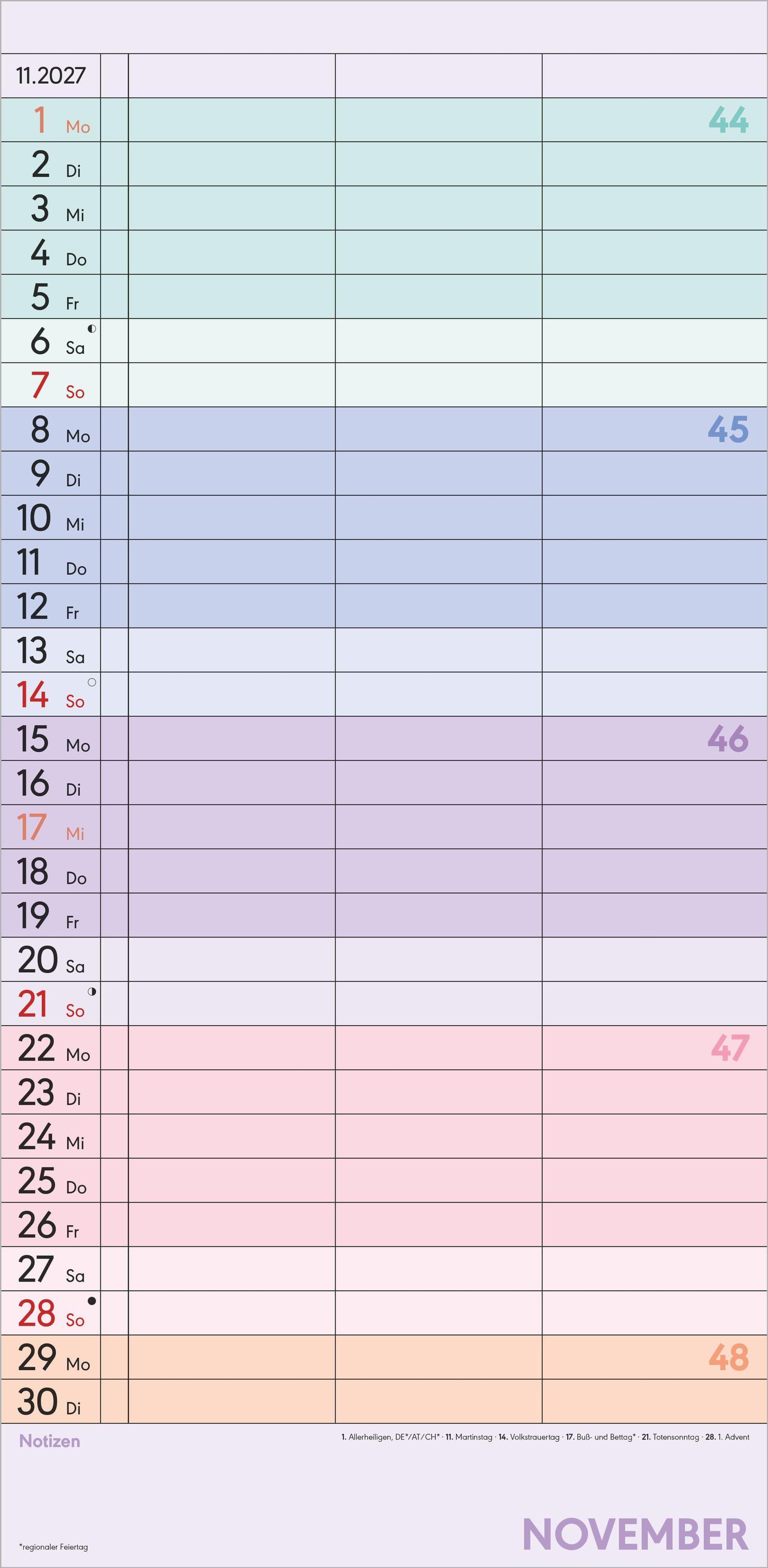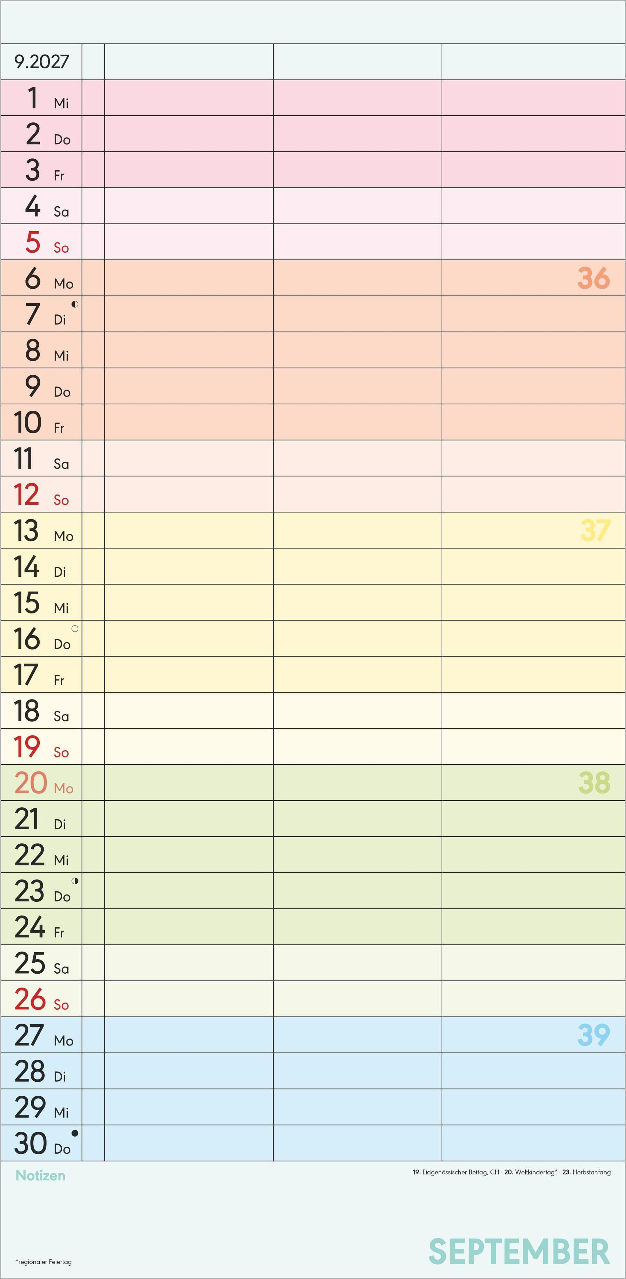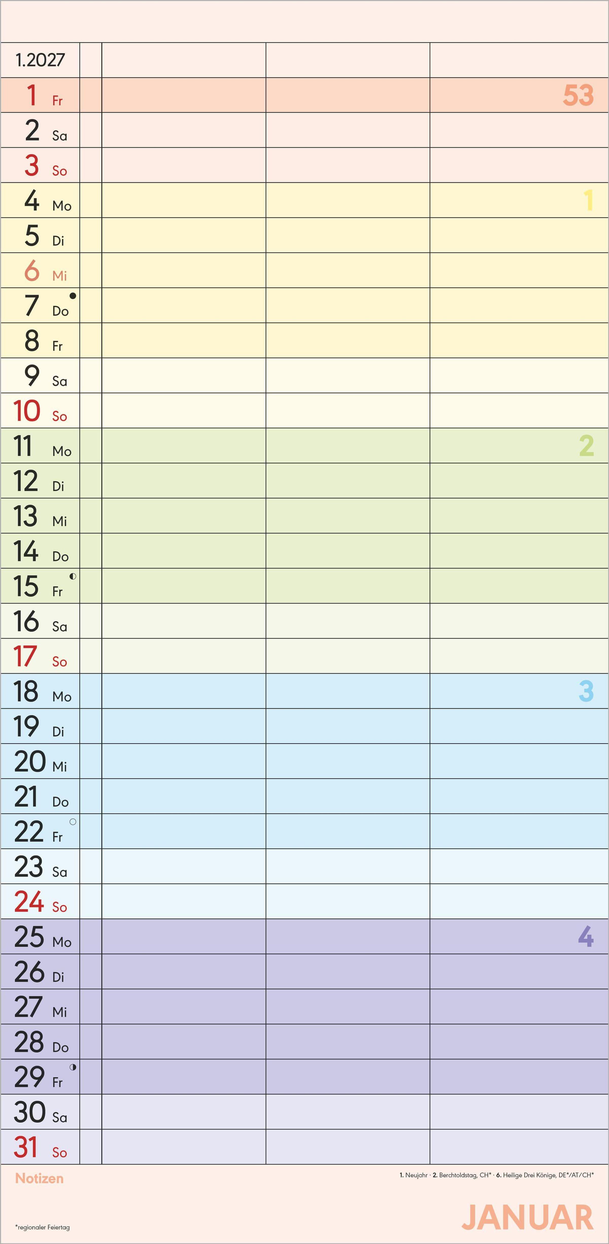 Superplaner Farbenfroh - 3 Spalten 2027
