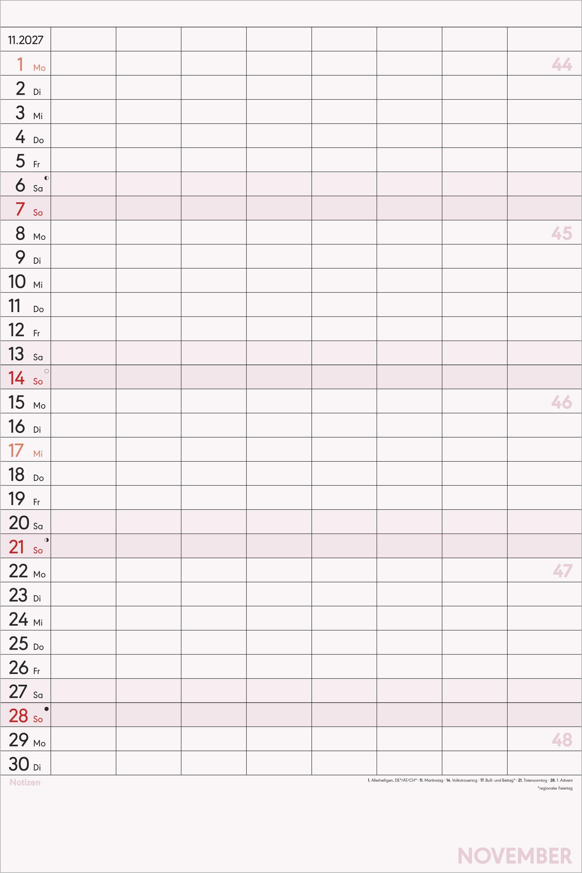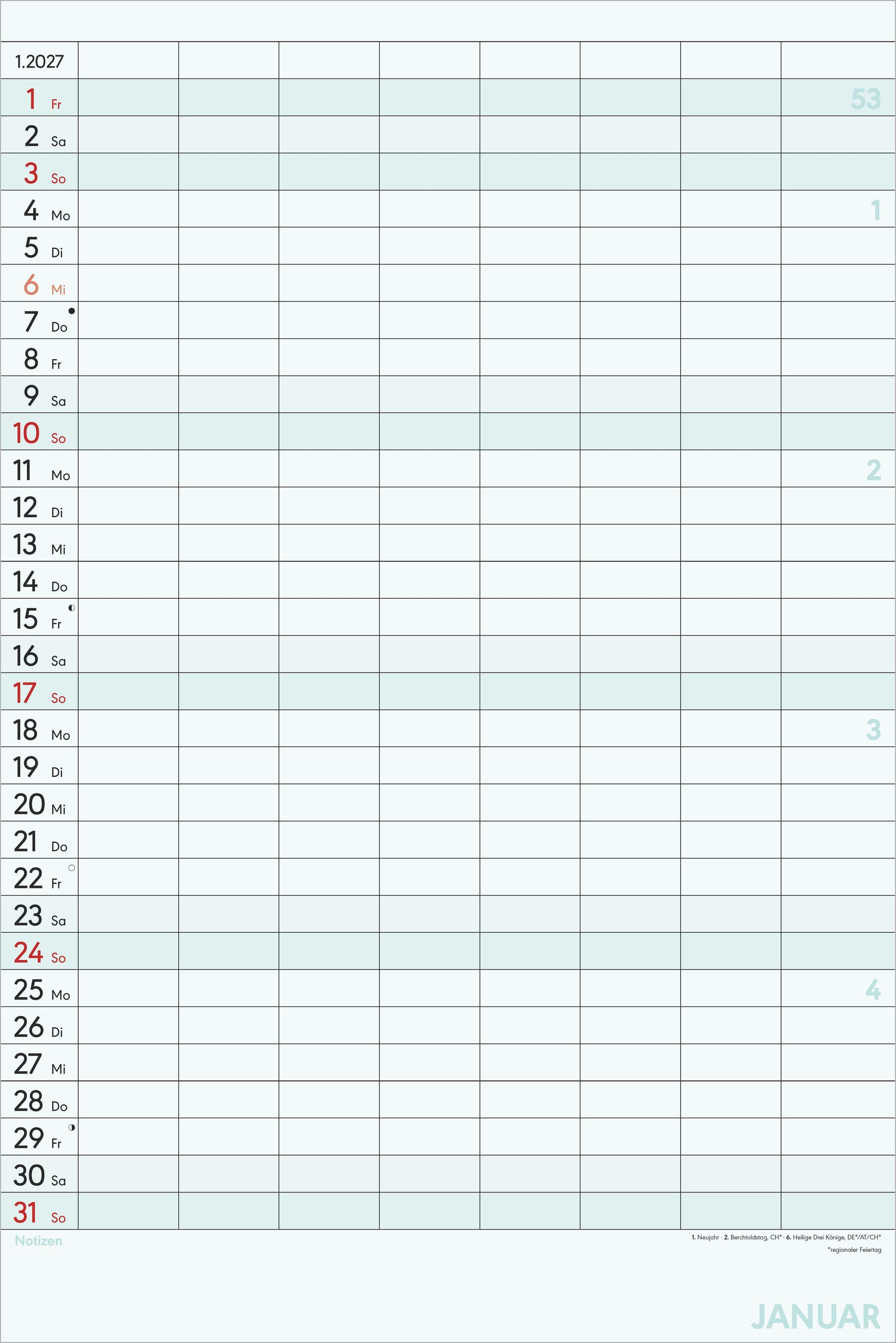 Zusätzlicher Platz: Notizbereich unter dem Kalendarium für wichtige Erinnerungen und Zusatzinfos